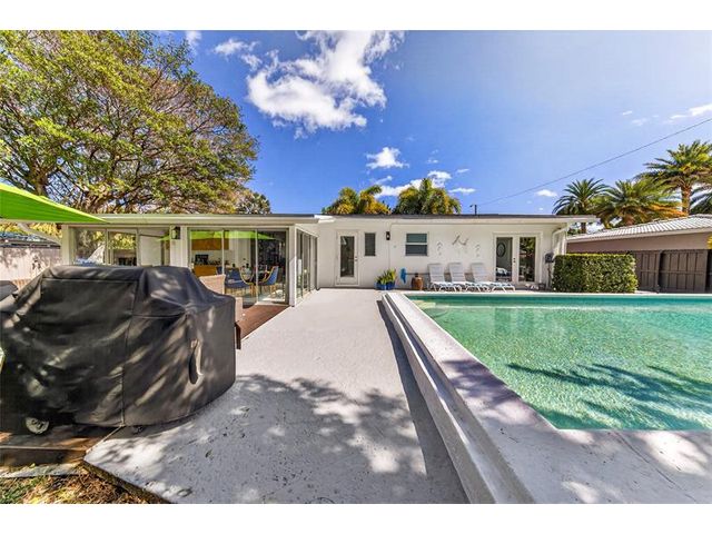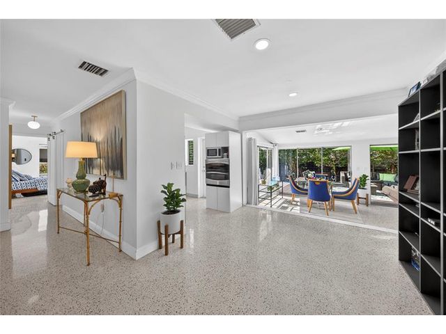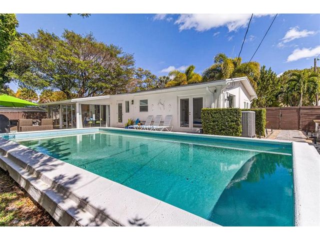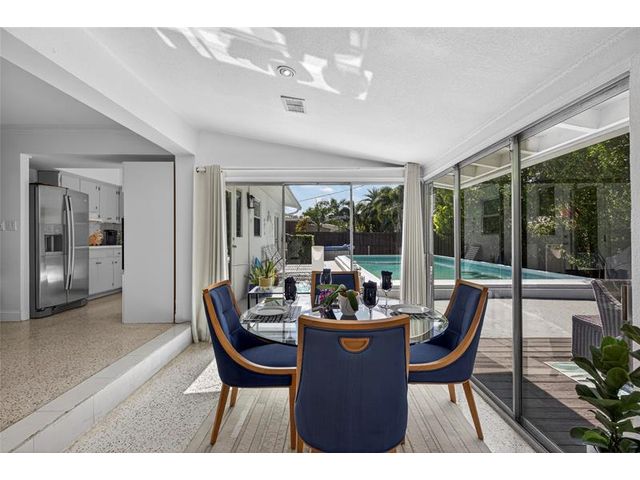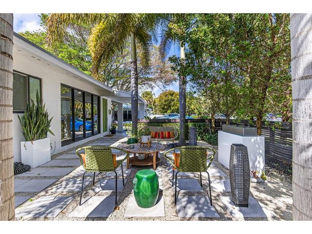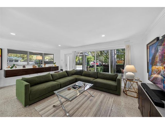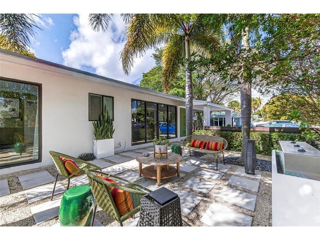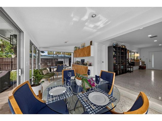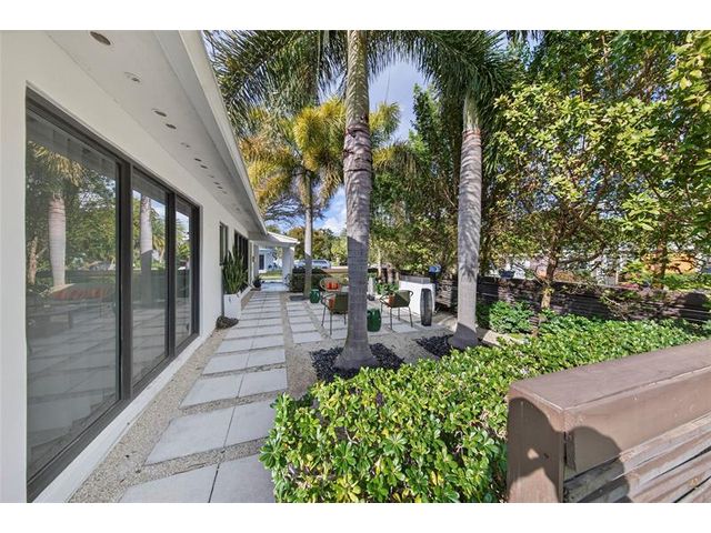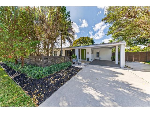 Warm, welcoming and inviting with striking exterior presence just steps from vibrant Wilton Drive! Tranquil, private courtyard adorned with magnificent landscaping, gardens, seating and gathering areas. Bright, open, and airy interior space beaming with natural light through endless walls of glass throughout! Generous primary living quarters with direct access to fenced backyard oasis complete with heated pool, BBQ area, relaxing, entertaining and sunning spaces. Terrazzo flooring, recessed lighting, crown moldings, updated baths, modern lighting and more. New roof (2024), newer a/c and h/w, interior laundry/storage, carport and PVP piping. Furnishings available.