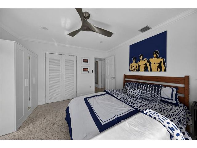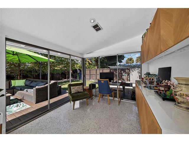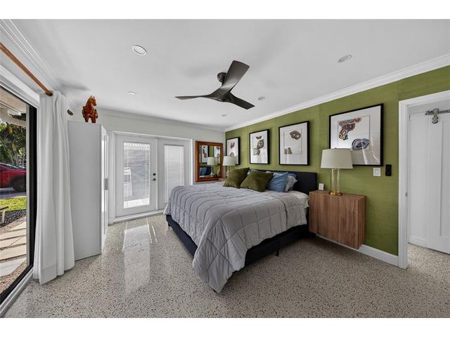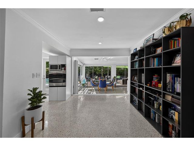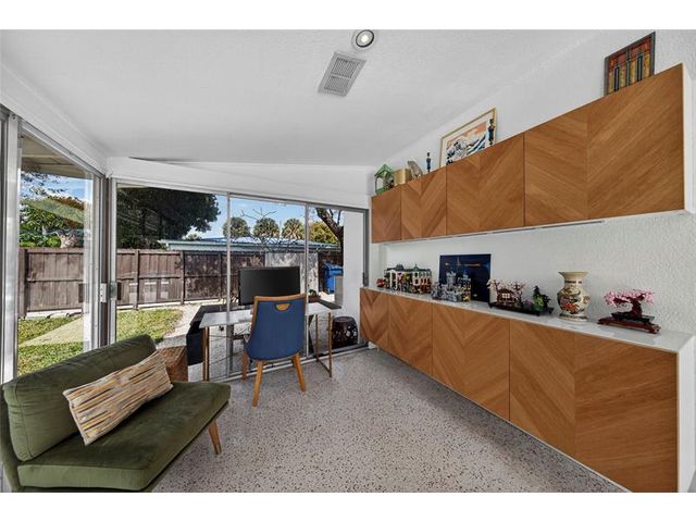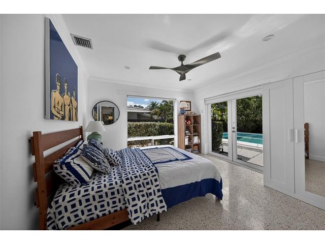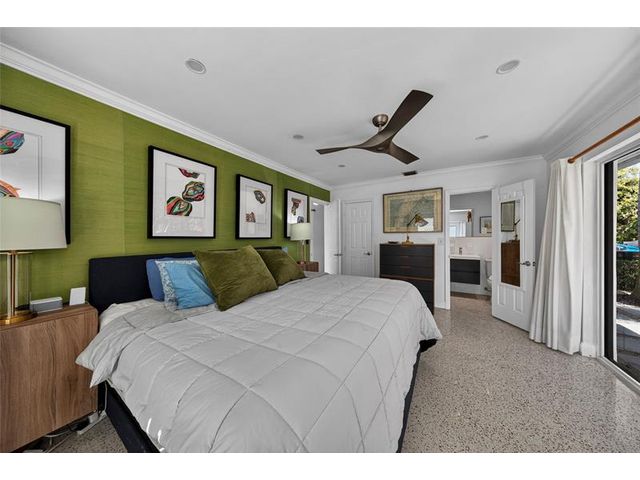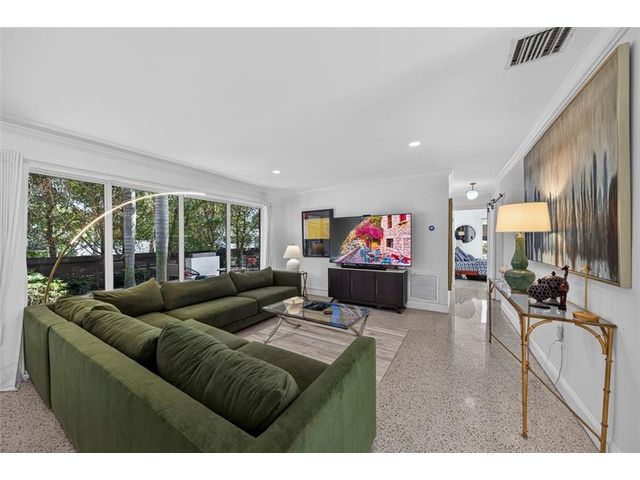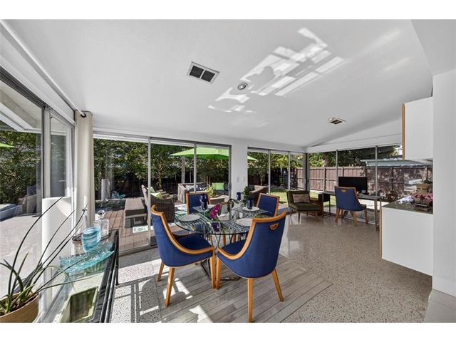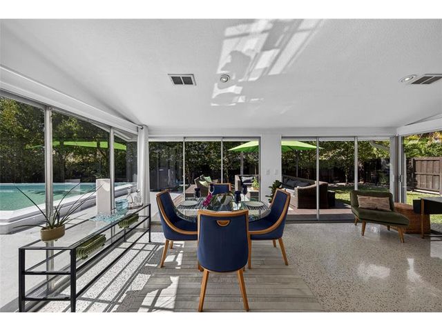 Warm, welcoming and inviting with striking exterior presence just steps from vibrant Wilton Drive! Tranquil, private courtyard adorned with magnificent landscaping, gardens, seating and gathering areas. Bright, open, and airy interior space beaming with natural light through endless walls of glass throughout! Generous primary living quarters with direct access to fenced backyard oasis complete with heated pool, BBQ area, relaxing, entertaining and sunning spaces. Terrazzo flooring, recessed lighting, crown moldings, updated baths, modern lighting and more. New roof (2024), newer a/c and h/w, interior laundry/storage, carport and PVP piping. Furnishings available.