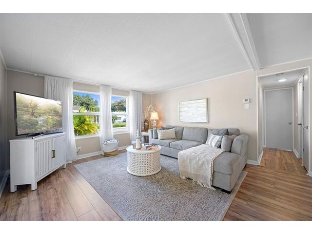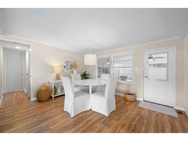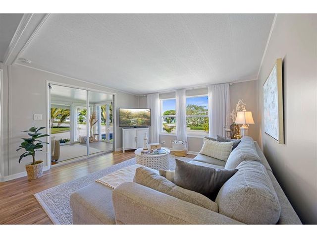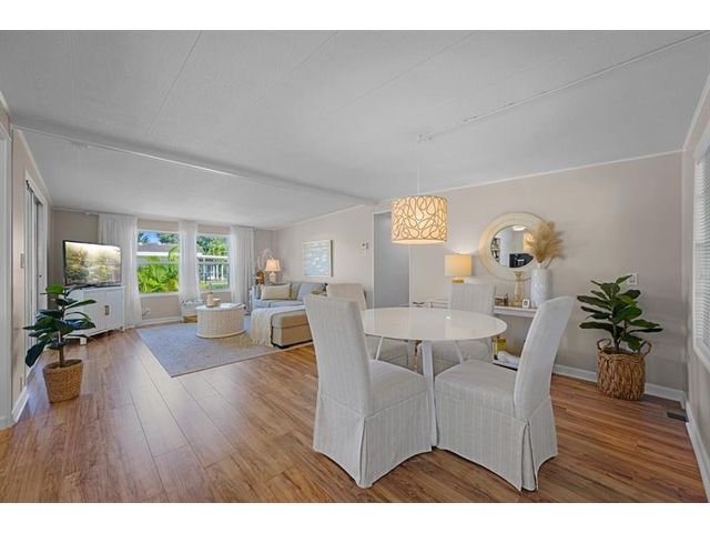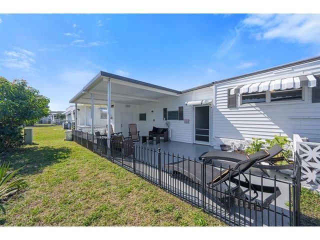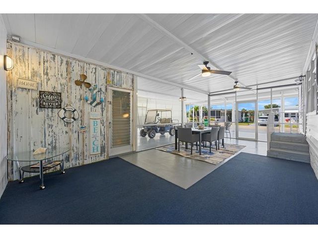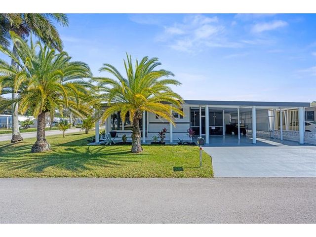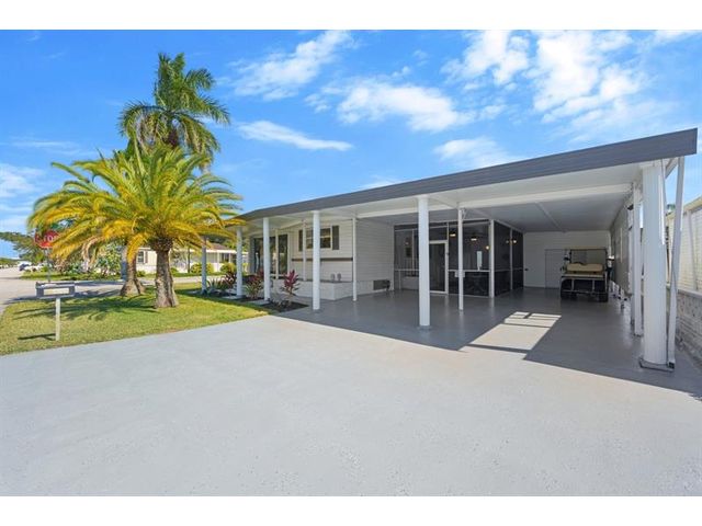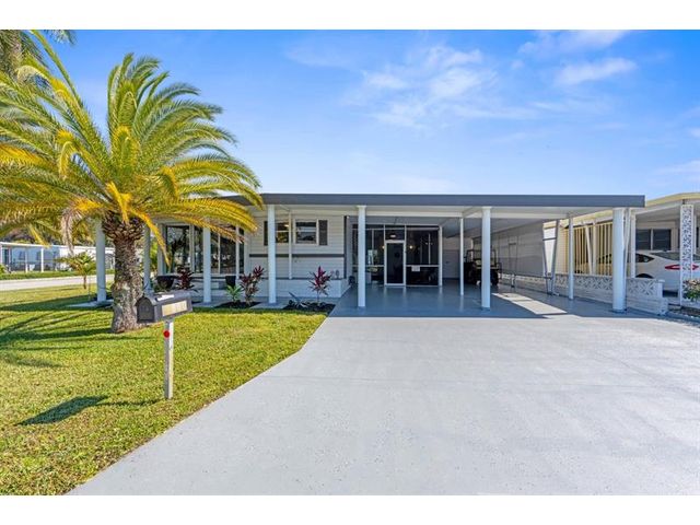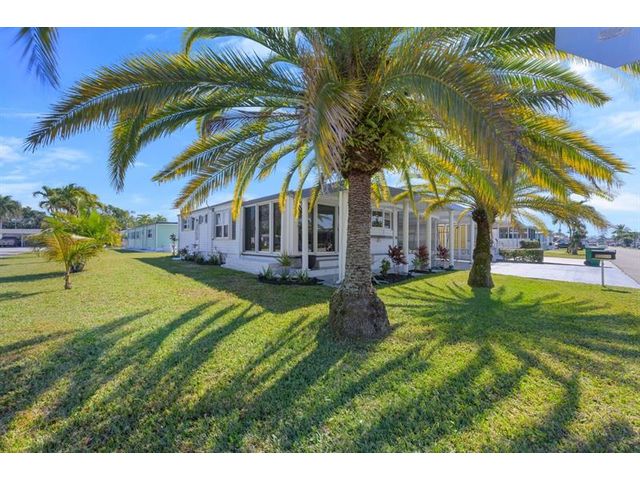 OWN THE LAND!!! Park City 55+ Community - Don't miss this immaculate home Located on a double corner lot and featuring 2 bedrooms, 2 baths, with a bonus glass-enclosed room. Updated kitchen with granite countertops and new appliances. Fully furnished and beautifully decorated. Additional highlights include a 4 ton A/C replaced in 2022, updated electrical and accordion shutters. Roof sealer is applied every year. New ceiling fans and lights throughout, separate laundry room. Amazing outdoor living space with a extra large screenroom and covered terrace to entertain and Bbq. Garage/shed for your golf cart, and paved driveway, with plenty of parking up to 5 cars. Clubhouse with 3 pools, mini-golf. Located close to shops, dining, near highway easy access to beaches and airport. MUST SEE!!!