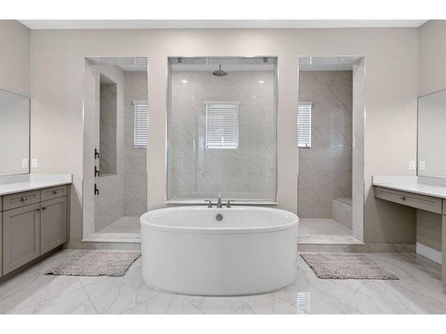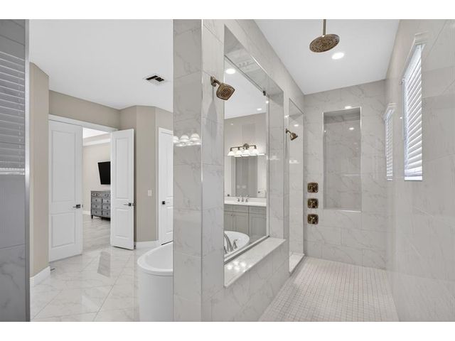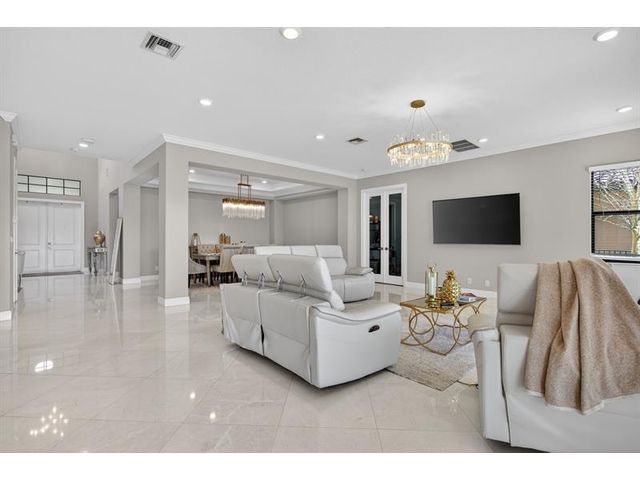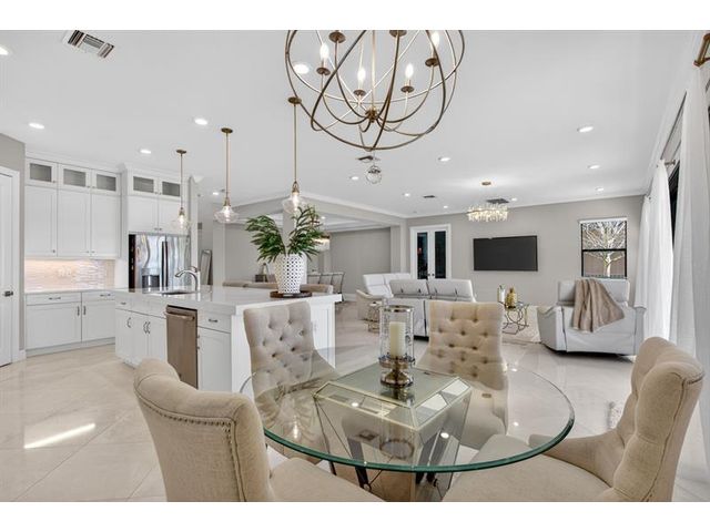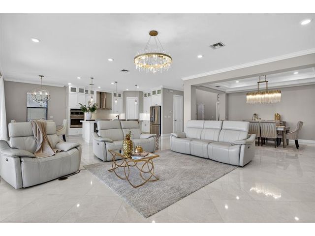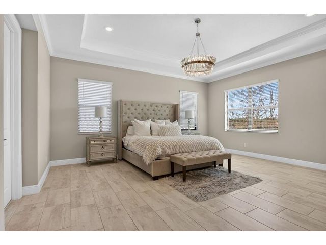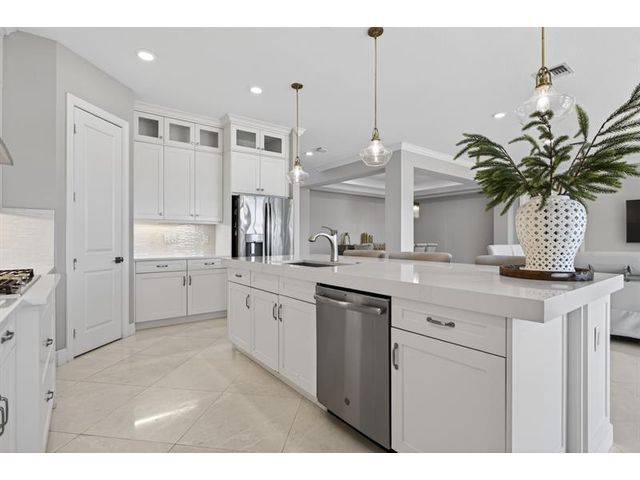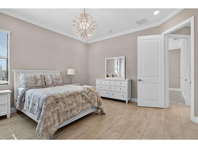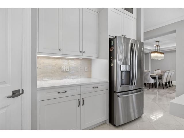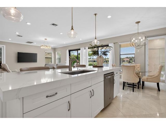This exceptional waterfront property, built in 2019 and spanning 8,123 square feet, combines modern luxury with Italian-inspired architecture and crown molding throughout. The kitchen features custom cabinetry to ceiling, quartz countertops, stainless steel appliances, five-burner gas cooktop, center island, and walk-in pantry. Real marble adorns the downstairs with a guest bedroom and ensuite on the first floor. The primary suite offers a walk-through shower, double vanities, and expansive walk-in closet, with three additional bedrooms plus loft completing the upper level. An exterior gas line enables future outdoor kitchen expansion while the fenced yard overlooks the lake. Complete finishes and quality construction throughout deliver turnkey luxury.