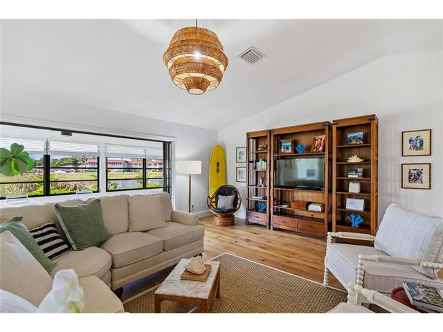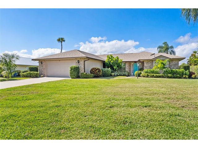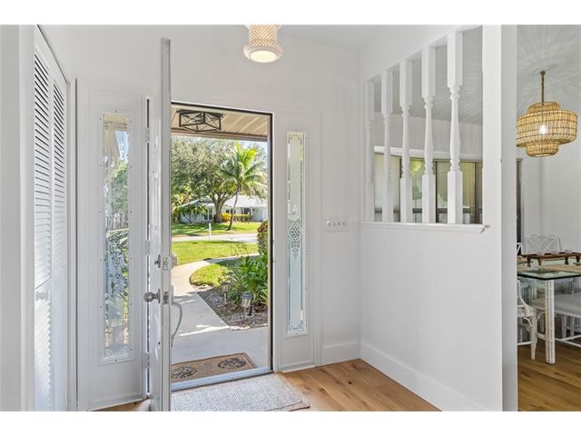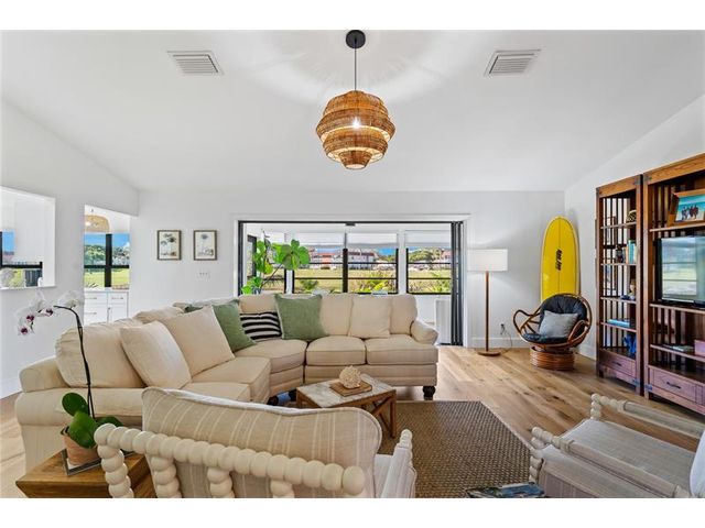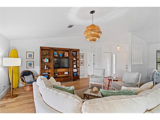 LOCATION! Rare setting on near HALF-ACRE lot. EAST OF US1! GOLF COURSE VIEWS ON THE LAKE. NO HOA. NO FLOOD ZONE Renovated! Light-filled home delivers effortless Florida living. Vaulted ceilings, 3bedroom 2bathroom split plan + indoor laundry. Easy access to bridge & beach, close to grocery shopping, dining, and top medical amenities - perfect balance of lifestyle and convenience. Quiet neighborhood, move-in ready with privacy, space + views rarely found in such a central location. 2021 Roof, 2022 replumbed, 2022 custom kitchen, engineered Oak floors throughout 2025 Impact glass. Rm for pool