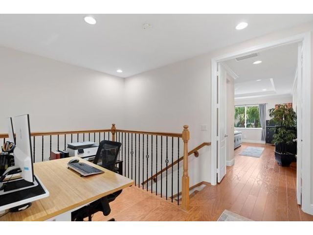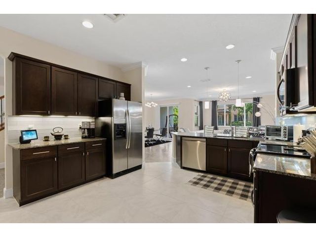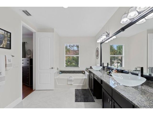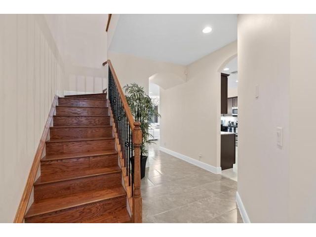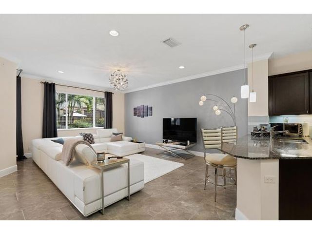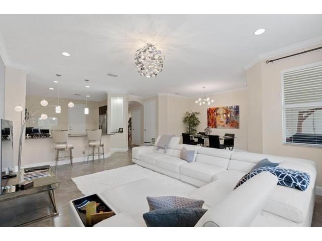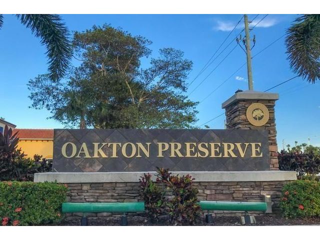 Meticulously maintained luxury 2013 townhome in the highly sought-after gated community of Oakton Preserve. This spacious residence offers 2,278 sq ft of living space with 3 bedrooms, 2.5 bathrooms and a 2-car garage. The open-concept main level features granite countertops, stainless steel appliances, tile flooring, and abundant natural light. Upstairs includes solid hardwood floors, crown molding, and a generous loft ideal for a home office or media area. The oversized primary suite offers dual walk-in closets and an en-suite bath with dual vanities and a soaking tub. Brick-paver driveway and patio, fenced backyard, impact windows, and spray-foam insulation enhance comfort and efficiency. Community amenities include a clubhouse, fitness center, game room, and heated saltwater pool.