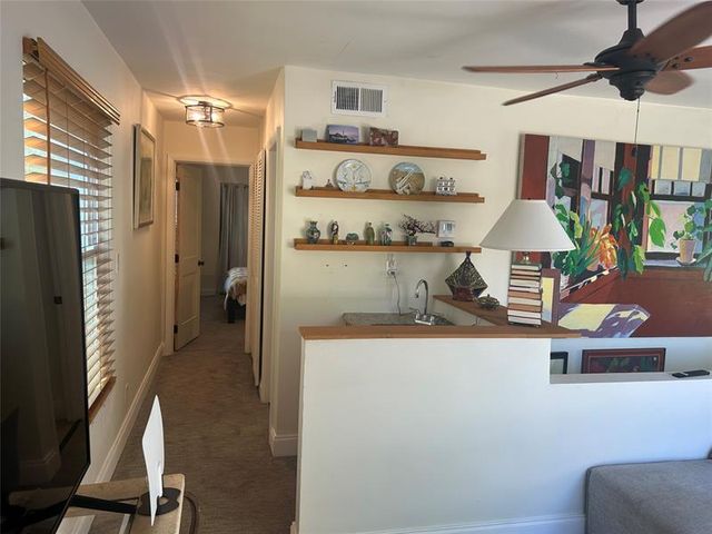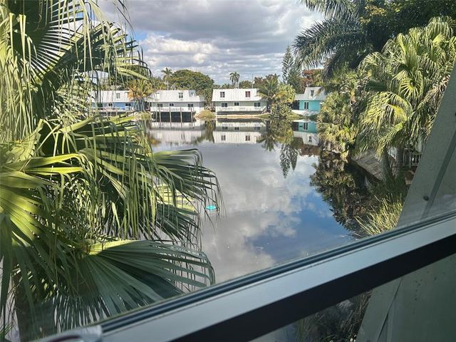 This charming tucked away home on a quiet cul de sac corner is one of 15 around a small lake in the midst of Oakland Park. The small lake attracts various birds during the year as well as ducks iguanas turtles and small fish. The two story house features on the downstairs level a living room, kitchen, dining room and bath. Along the water side of the building is a 5'x38' balcony overlooking the water. On the second floor there is a generous TV room, two bedrooms and a full bath with washer and dryer. There's access to the outside deck which includes a seating area for 4 as well as an eating area for 4. Property is sold as is but is currently comfortably lived in by its owner that purchased in 2005. There is parking for 3 vehicles. Use of community pool.
