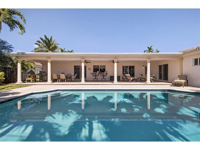 Welcome to this beautifully maintained 4-bedroom, 2-bath home in the heart of Lighthouse Point. Designed for indoor-outdoor living, the property features an amazing tropical pool and a huge 49ft covered patio—perfect for entertaining and enjoying the South Florida lifestyle. Inside, you’ll find an updated white kitchen with granite countertops, stainless steel appliances, and a large center island with bar seating. The home offers two spacious living areas, a formal dining room, and generously sized bedrooms. Impact windows, 2 car garage, entire house generator & more makes this your perfect new home! Located just steps from Dan Witt Park and across the street from waterfront homes, this residence is ready for your personal touches.