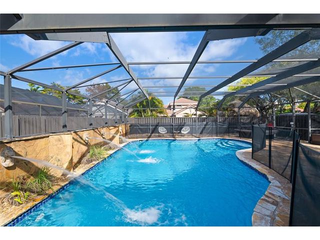 Nestled at the end of a quiet cul-de-sac in the tranquil Cross Creek neighborhood, this elegant two-story home offers a true private retreat. The spacious layout features 3 bedrooms, 2.5 baths, and a versatile loft ideal for a den or home office. The primary bedroom is conveniently located on the first floor and includes a walk-in closet and a private ensuite bathroom. The updated kitchen boasts granite countertops, stainless steel appliances, and a large cooking and serving island that opens seamlessly to the family room—perfect for everyday living and entertaining. Step outside to enjoy a serene, expanded private yard with a free-form pool and a generous covered patio, ideal for relaxing or hosting guests. Complete accordion hurricane shutters throughout provide added peace of mind.