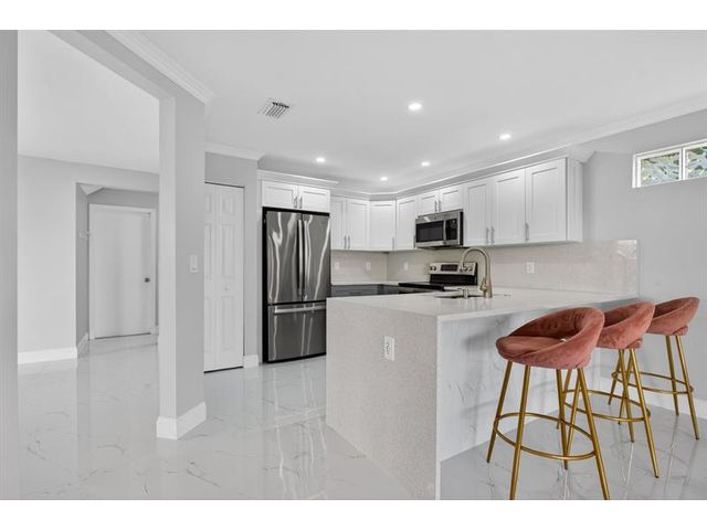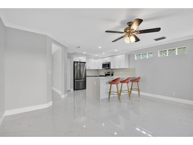 This is a central located house with recent updates, including new roof, new porcelain floors, new kitchen, wh. New paint inside and out. It is just 350 feet from community pool. The house has been well-maintained by its long time owner and features a low maintenance beautiful landscaping with a decorative wishing well and new sod. The interior has beautiful flooring, decorative cast iron stairs, and real wood floors upstairs. The open layout between the dining and living room creates a spacious atmosphere. Second floor loft provides additional space that can be used an office or play area. The property also feature a large outdoor patio which is enclosed and tiled perfect for entertainment or play area. A fulled fence yard, not cero lot and not a flood zone. Space for boat. Fin. avai