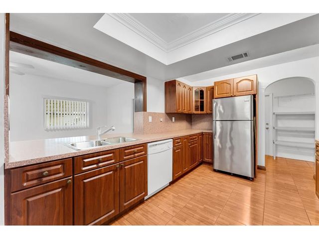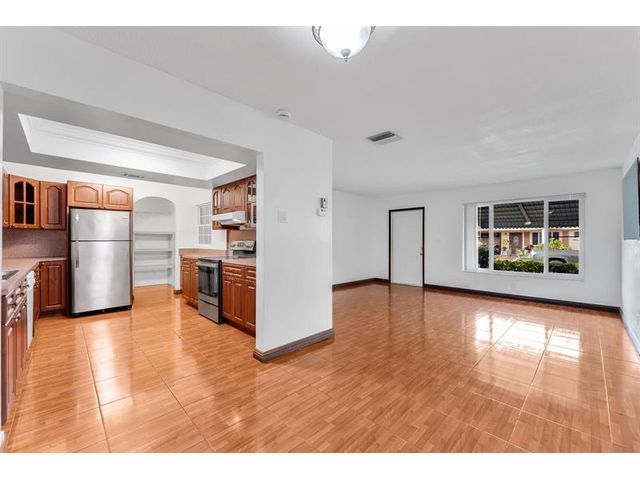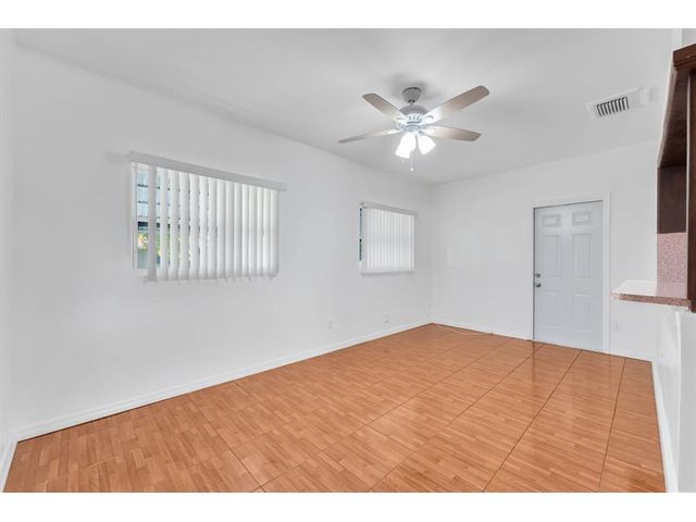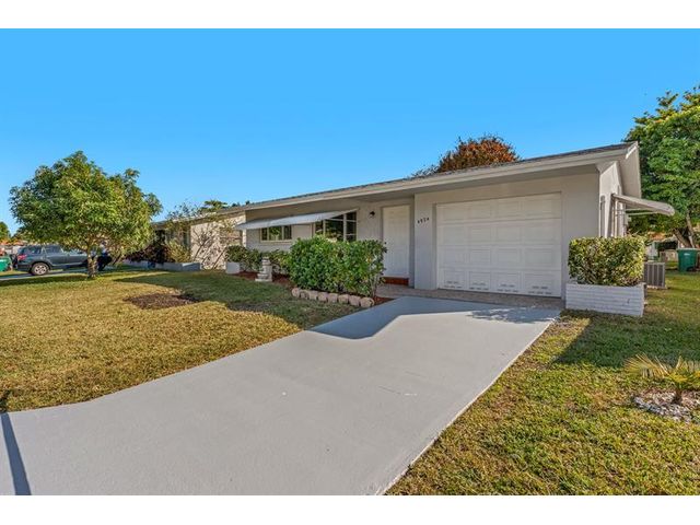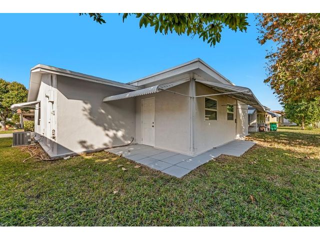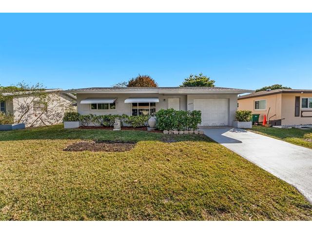 Move-in ready. Updated beautifully this 2 bed 1 bath home is located in a 55+ community. The kitchen has a seamless open concept with extra storage custom hardwood cabinets and countertops. Breakfast/snack bar. SS appliances, hurricane/thermal windows and garage doors. Updated electric panel, tile flooring throughout, ceiling fans, new roof, newly painted interior and new light fixtures. The master suite with walk-in closet. Large Florida Room for entertaining family and friends. The stylish and spacious open-concept bathroom features natural stone tile and large cream tone tiles creating a calm serene spa-like feel. Very well maintained neighborhood with low HOA, 2 community pools, clubhouse with social activities. Prime location close to the beach, major highways, shopping and dining.