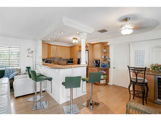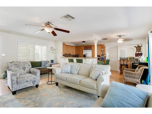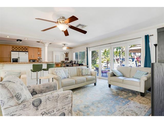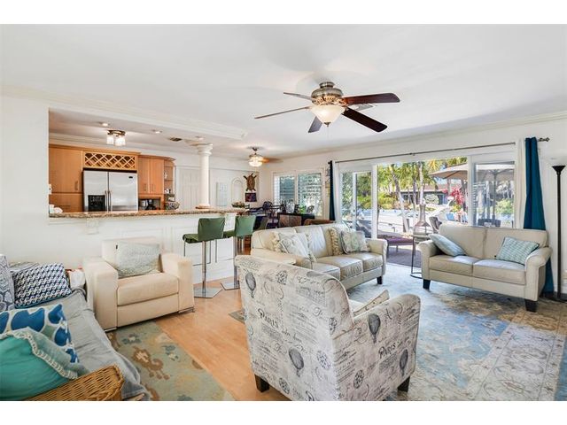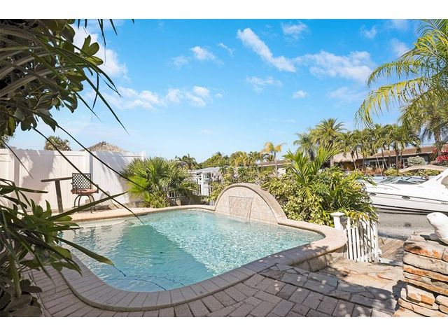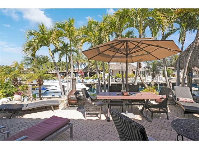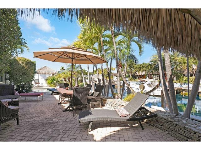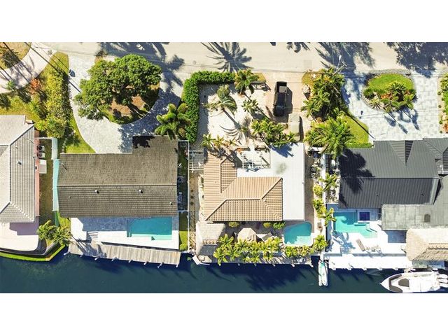 Located in prestigious Pompano Shores, this waterfront pool home offers approximately 75 feet of deep-water frontage & no fixed bridges, ideal for serious boaters. Enjoy Intracoastal views & a true resort-style outdoor setting, complete with a heated pool and spa, & an expansive terrace designed for seamless indoor-outdoor living. The oversized entertainment area features a granite island & built-in BBQ, creating the perfect space for hosting gatherings, sunset dinners, or relaxing weekends by the water. Lush tropical landscaping surrounds the property, creating a private, tranquil setting while enhancing the home’s curb appeal. Mature palms & well-designed greenery frame the pool & waterfront, providing shade, color, & a natural backdrop that enhances the overall outdoor experience.