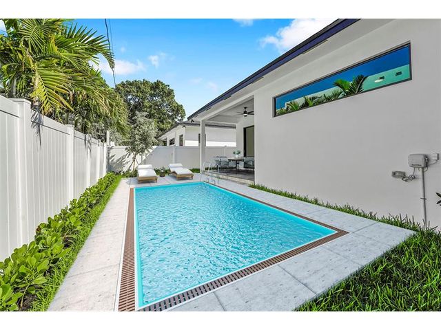 Newly Constructed: Centrally located in the heart of Fort Lauderdale/Wilton Manors area, with a total of 2,800 sq ft. This 4 bedroom, 3.5 bathroom will impress. The transitional design is classic Fort Lauderdale with a modern twist. 10-ft ceilings, 8-ft interior doors, large custom kitchen with quartz countertops, large format porcelain tile, 2 car garage, large impact windows, with 12-ft slider to your backyard oasis. Perfectly laid out with functionality and entertaining in mind. 4 large bedrooms, each with own bathroom. Spacious Master suite offering a luxurious en-suite with shower and free-standing tub, walk-in closet & its own walk out patio to covered lanai. Just minutes away from Las Olas, Downtown, the Beaches, and Wilton Drive. POOL OPTION: Photos of pool are renderings.