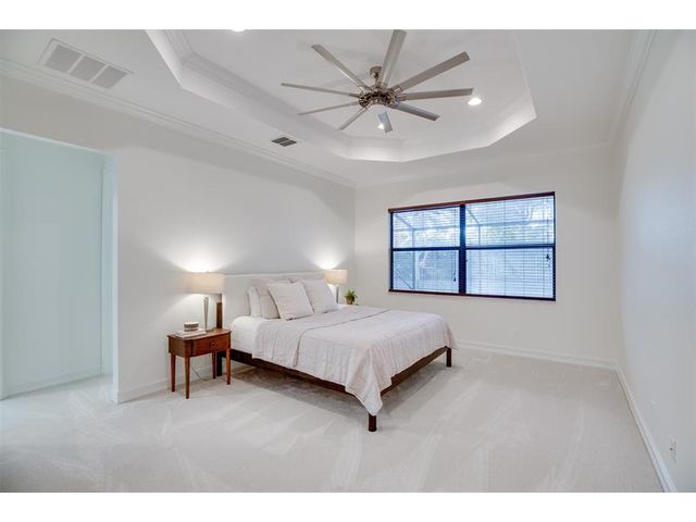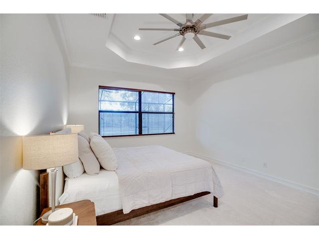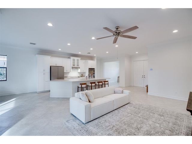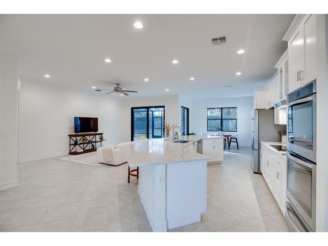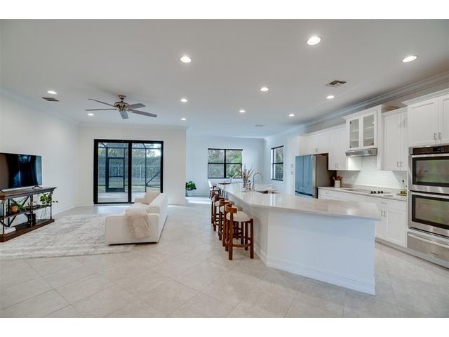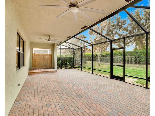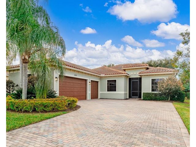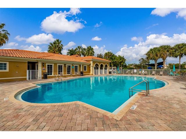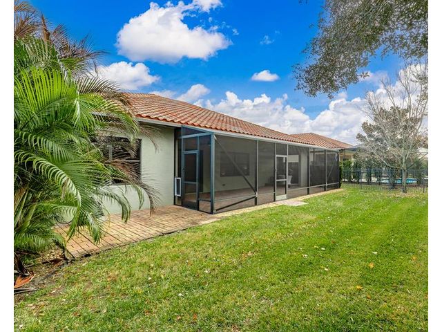 Welcome to Verolago, a beautiful Mediterranean-inspired gated community offering resort-style amenities including a fitness center, heated pool, clubhouse & Pickleball/tennis. This sought after Arlington model features 3 bedrooms plus a den, 2 baths, impact windows, 3 car garage. This concrete block, move in ready home offers an open concept with chef's kitchen featuring double ovens, an oversized island and stunning new Taj Mahal quartz countertops. Recent updates include fresh interior paint, newer AC and hot water heater. Extended Lanai, fenced yard, great for pets, 15 Minutes to the beach!