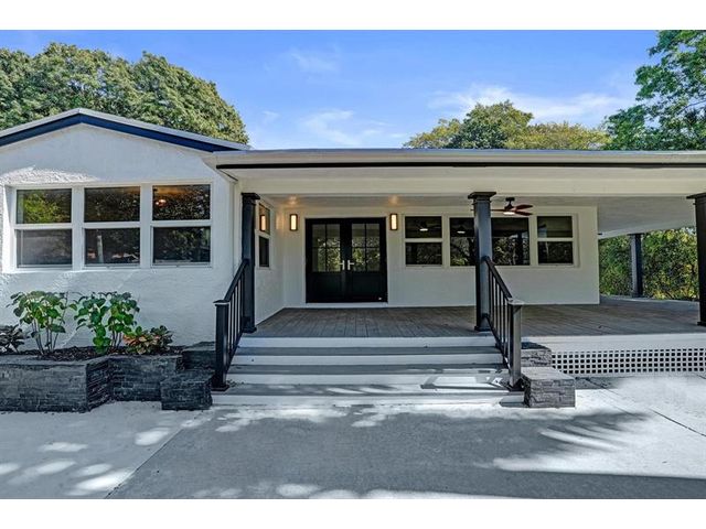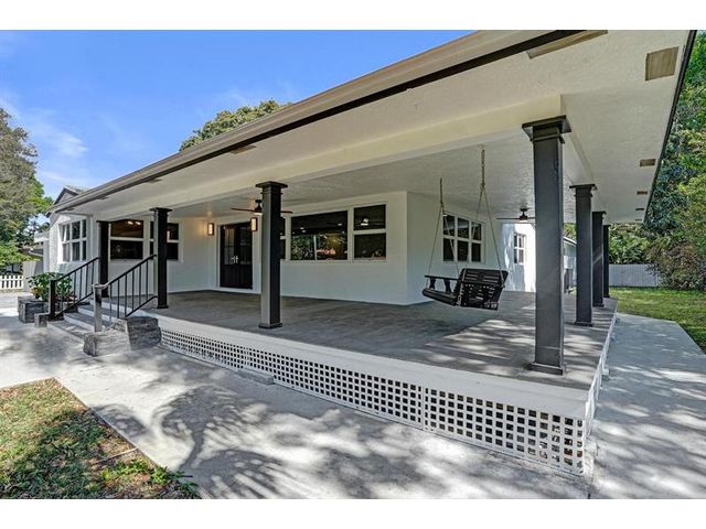 This is NOT your typical farmhouse. Set on an acre, it offers space, privacy, & calm while still being close yet far away. A wrap-around porch with swing invites slow mornings, breezy afternoons, & sunset conversations. Inside, rustic warmth blends with contemporary design in a bright floor plan for everyday living & easy entertaining. The kitchen has new appliances, farmhouse sink, & generously sized island. Impact windows throughout bring in natural light, enhancing the farmhouse feel. Oversized bedrooms offer comfort & flexibility, with 3 of the 4 having their own bathrooms. The spacious primary includes a spa-inspired bathroom with double shower, soaking tub, & attached office/workout space. Outside, mango & lychee trees add a taste of the tropics alongside the pool & BBQ.