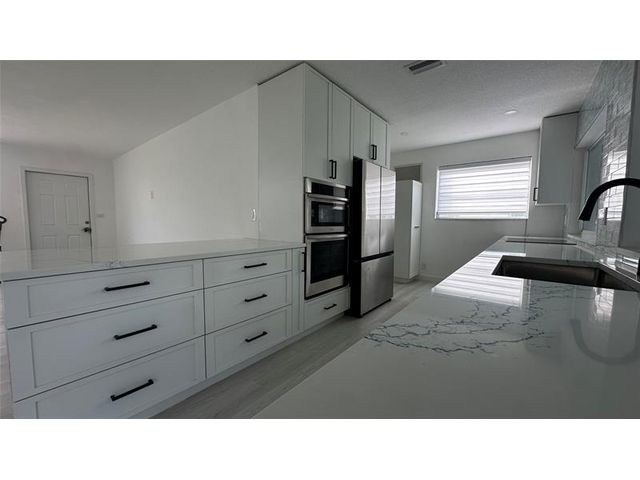 Fully Renovated 2/2 Single Family Waterfront Home w/ Many Updates & Features in Desirable Tamarac Lake North! Updates - A/C Unit (2025), Appliances (2024) – SS Double Door w/ Pullout Freezer Drawer + In-door Water Pitcher, SS Wall Oven/Microwave, SS Dishwasher, and Glass Cooktop, and Water Heater (2023). Other Features - Two Custom Slider Kitchen Windows, High Impact Front Door, New Vinyl Flooring Throughout, New Bathroom Cabinets + Mirrors with Flooring, and New Modem Kitchen w/ Pullout Drawers. Other Amenities include low HOA fees for lawn service and access to community pool overlooks beautiful lake view. Easy access to renovated Caporella Park, friendly walkable neighborhood and easy access to I-95 & Turnpike, and panoramic view to tree lined waterfront oasis and plenty of FL wildlife.