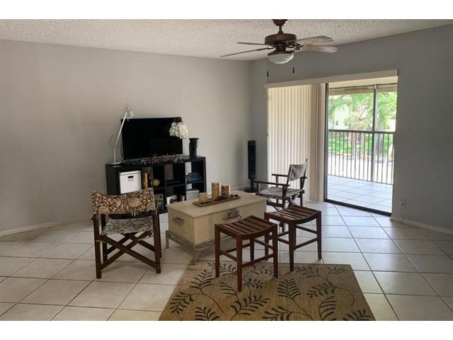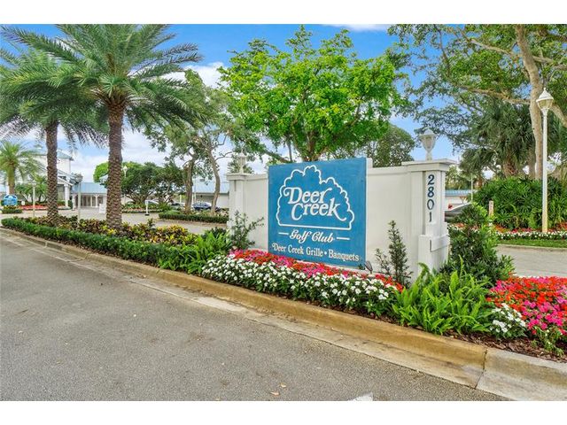 Great second floor 2 bedroom, 2 bath condo with large patio extending the entire length of the condo and opening to living area and both bedrooms. Stainless steel appliances. Tile floors in living areas, carpet in both bedrooms. Full sized washer & dryer. Storage room on patio. Located very close to the heated community pool. Pets ok with breed restrictions & a size limit of 28 inches at the shoulder. Investor friendly, can rent immediately for a min. of 30 days, up to 12 times a year. Deer Creek is a beautiful golf community with NO MANDATORY GOLF MEMBERSHIP REQUIRED, pro-shop, restaurant, bar, bike/jogging paths, parks. Close to shopping, major highways & just over 5 miles to award winning Deerfield Beach. Association is in good financial shape with reserves.