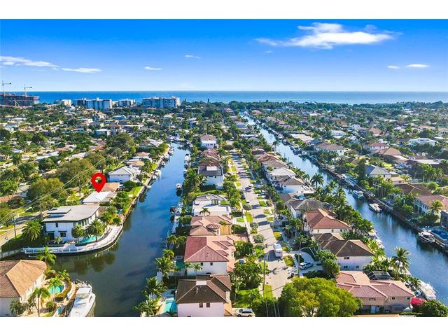 Enjoy effortless ocean access with no fixed bridges and a short ride to the inlet from this stunning, modern deep-water residence in one of Lighthouse Point’s most sought-after waterfront communities. Set on a wide canal adjacent to the boat turnaround, the property offers maneuverability for boats & yachts. The renovated interior features vaulted ceilings & natural light. The home offers 3 bedrooms and 2 bathrooms, with hurricane-impact windows and doors, a newer roof & A/C systems. The designer kitchen features high-end cabinetry, premium countertops, luxury finishes & Miele appliances with a built-in wine cooler. Step outside to the new patio and new dock to unwind watching boats and enjoy sunset views. A rare opportunity to own a waterfront home offering elegance & boating convenience.