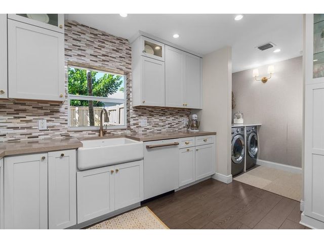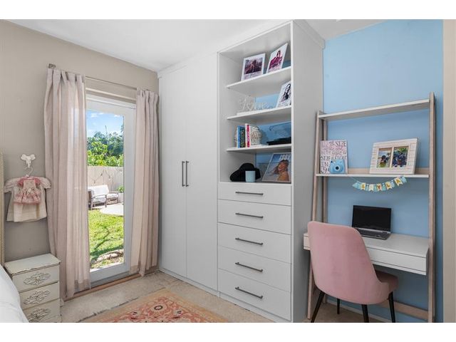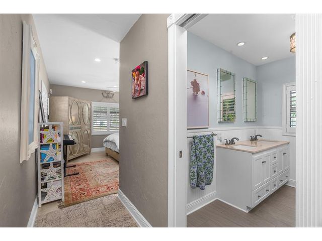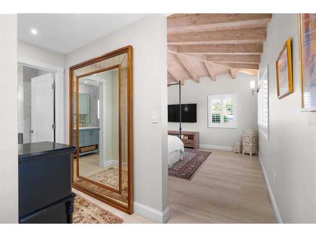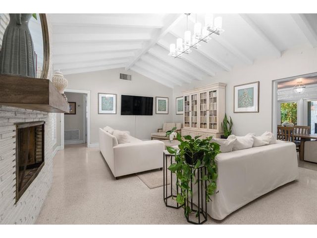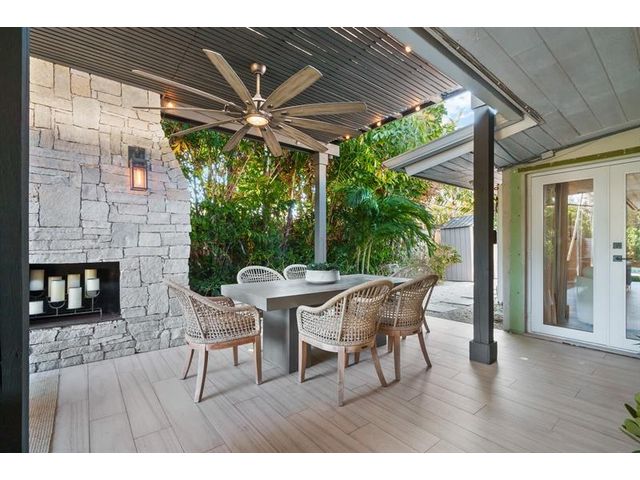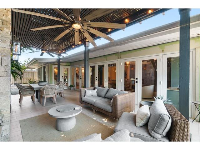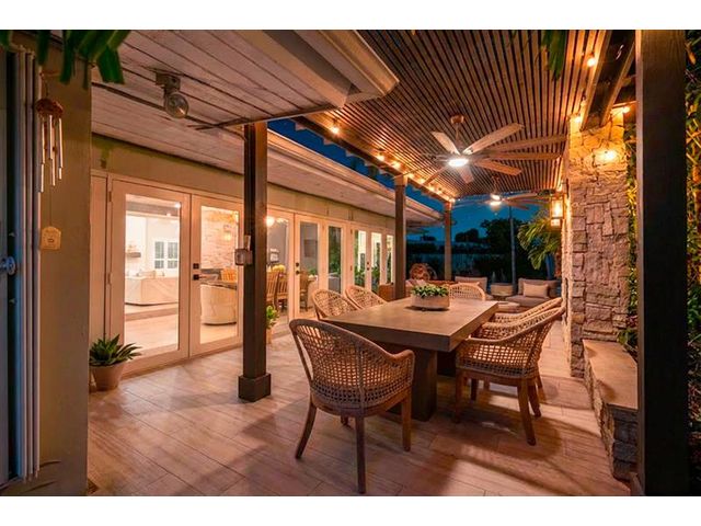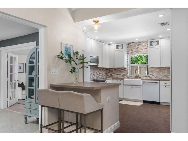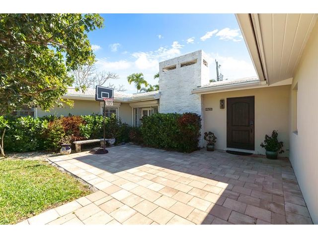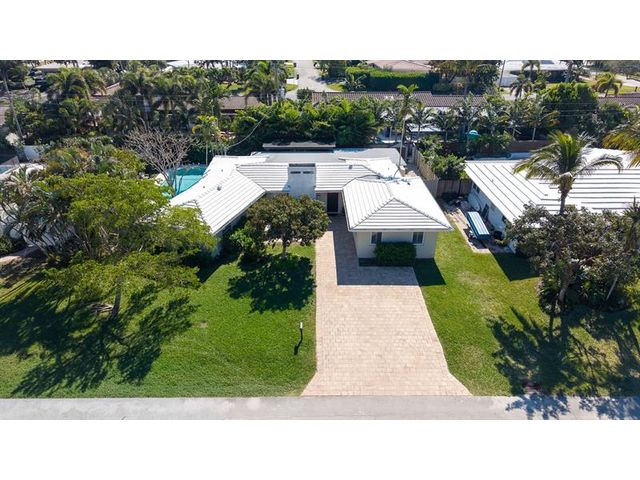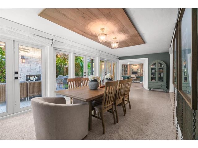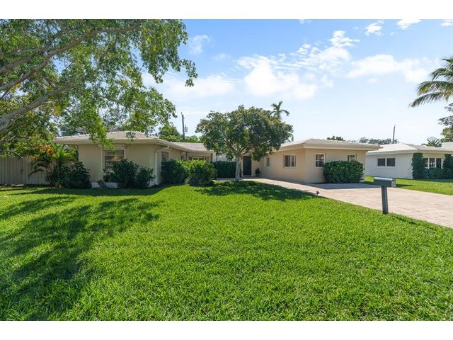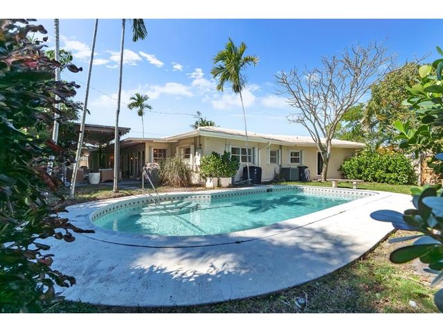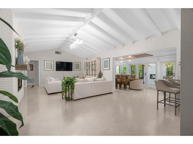Step inside this impeccably appointed 4 bedroom, 3 bathroom Coral Ridge residence, located within Bayview School District. Thoughtfully expanded and organically designed, this home features vaulted beamed ceilings, triple split bedroom plan, and sophisticated primary retreat. Sunlit kitchen showcases counter seating, new appliances, warm wood-grain tile flooring, plus adjacent laundry room. Spacious dining room accommodates intimate dinners or larger gatherings with ease. Newly installed impact doors open to an expansive, lushly landscaped outdoor living space and pool. Additional details include classic terrazzo flooring, plantation shutters, and elegant grasscloth wall coverings. This Coral Ridge gem offers the ideal balance of luxury, comfort, and location.