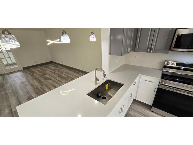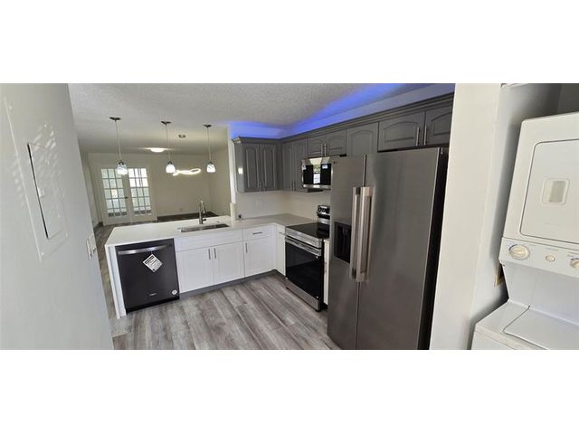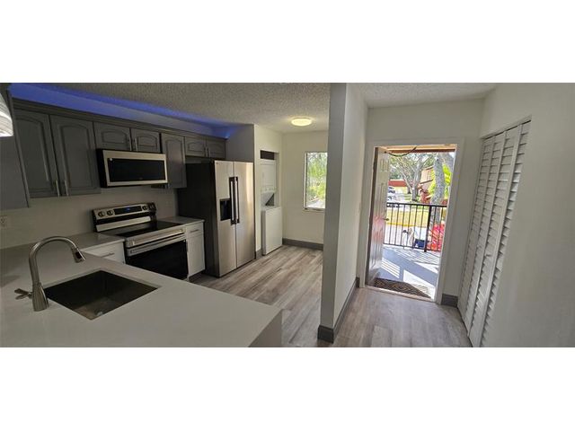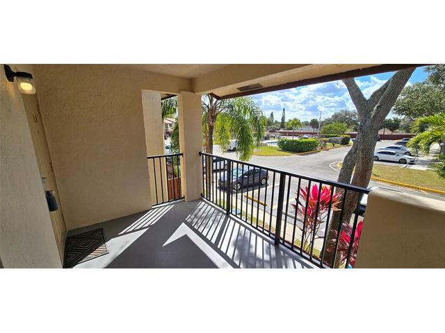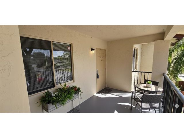 Second floor 3 room 2 bath condo with front patio with view toward the community pool. Recently updated with Luxury laminate vinyl 5 inch baseboards. New Kitchen appliances, new white quartz countertops full back splash and w/under mount deep sink overlook into the living room with an open floor plan and French doors leading to the 3rd room. Both bathrooms have new vanities and full size LED mirrors. Newer AC with warranty from the manufacturer. plenty of storage room space outside in the front balcony patio. Master bedroom has a walk in closet. Investor friendly property with ability to rent out right away. Owner willing to do Seller financing. Terms based on approved credit , income verification and deposit .