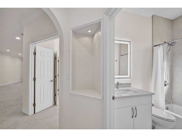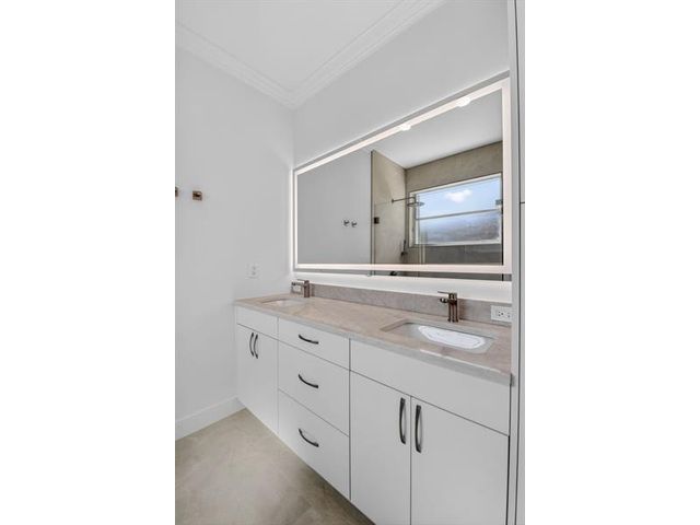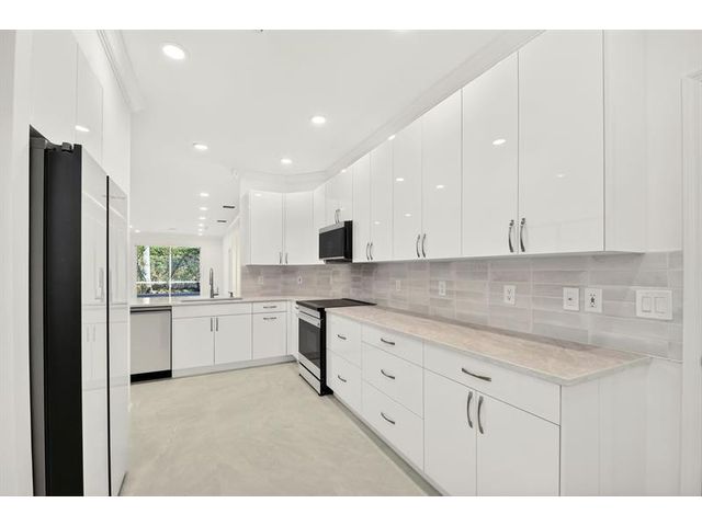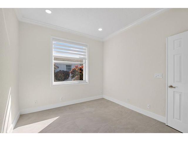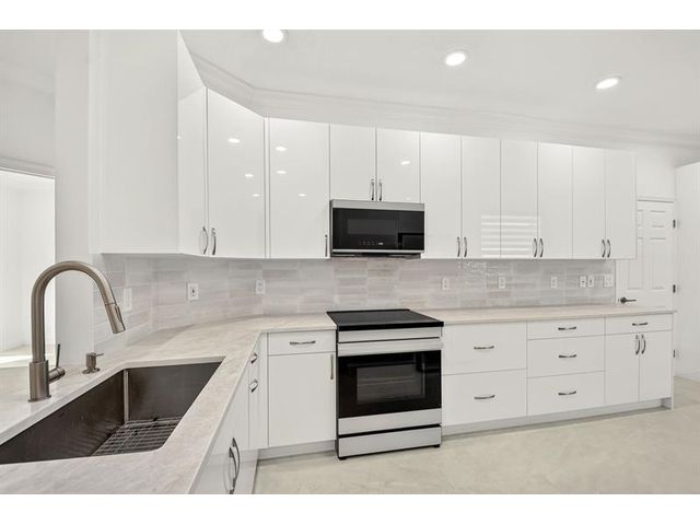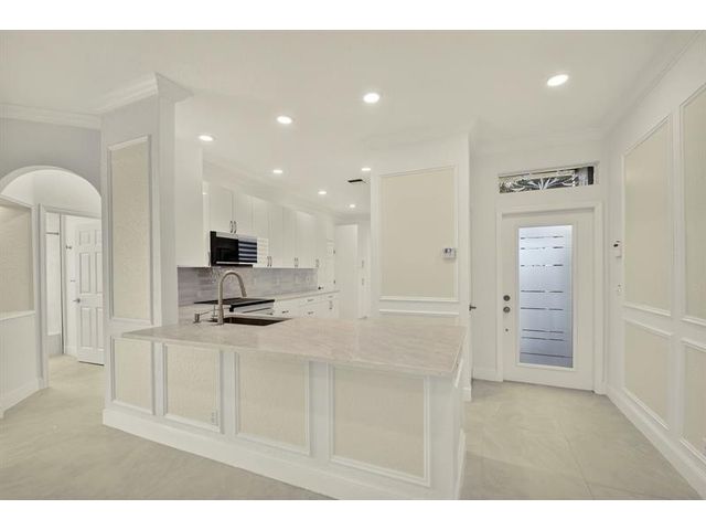 Stunning Fully Renovated Home (2026) in Majestic Isles – 3 Bed / 2 Bath Beautifully and completely renovated in 2026, this light-filled 3-bedroom, 2-bath home is located in the highly desirable Majestic Isles 55+ gated community. The interior features elegant 24”x48” natural-tone porcelain tile throughout, high ceilings with crown molding, and designer picture molding in the living and dining areas. LED lighting with dimmers is installed in every room, enhancing both comfort and ambiance. The designer kitchen showcases 42-inch high-gloss white custom cabinetry with pull-out pantry drawers, quartz countertops with bar seating, and a full suite of high-end bespoke white glass Samsung appliances, including an induction cooktop. Premium designer hardware and fixtures complete the space.