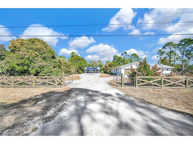 Step into elevated country luxury on this 1.15-acre Loxahatchee estate, framed by a classic crossbuck horse fence and designed for those who want both refinement and freedom. The beautifully updated 3/2 main home features vaulted ceilings, luxury waterproof flooring, and a granite-and-steel chef’s kitchen. A separate 2/1 guest house offers upscale privacy for guests or multigenerational living. Enjoy serene evenings on the expansive screened lanai and the freedom to bring boats, RVs, livestock, or horses. With a metal roof, impact windows & doors, custom-made RV/boat overhang, storage, fruit trees, and over $200K in upgrades ready for its new owner—Close to shopping, restaurants, Lion Country Safari, Animal Sanctuaries, Palm Beach Zoo, and so much more! NO HOA!