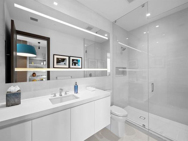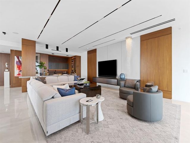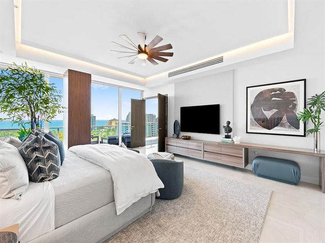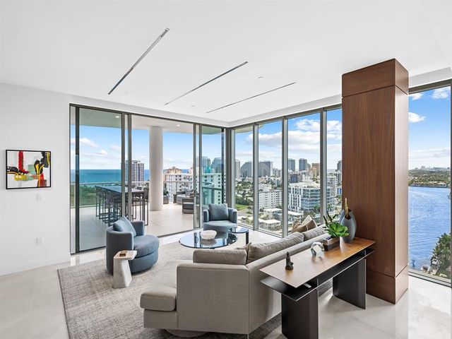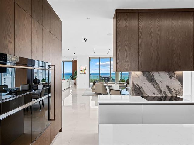 This unprecedented penthouse was purchased as a shell, redesigned & completed with no original or remaining finishes from the developer. Breathtaking views over the ocean, Intracoastal & city skyline through flr to ceiling walls of glass inviting natural light over the open flr plan & living spaces. Architectural details, curated finishes & state of-the art lighting provide a sophisticated lifestyle. Expansive terraces & a summer kitchen extend interior living areas into the sky. The epicurean kitchen w/an abundance of cabinets & upgraded appliances will inspire those who entertain & cook. The primary suite is the ultimate retreat: a custom walk-in closet & spa inspired bathrm. Control 4 technology, turnkey/fully furnished, 3parking spaces, private EV charger, add'l storage Sqft from BCPA