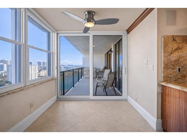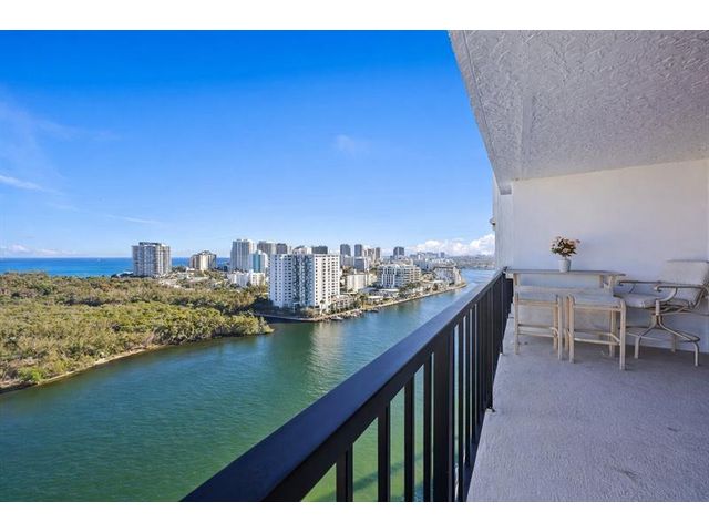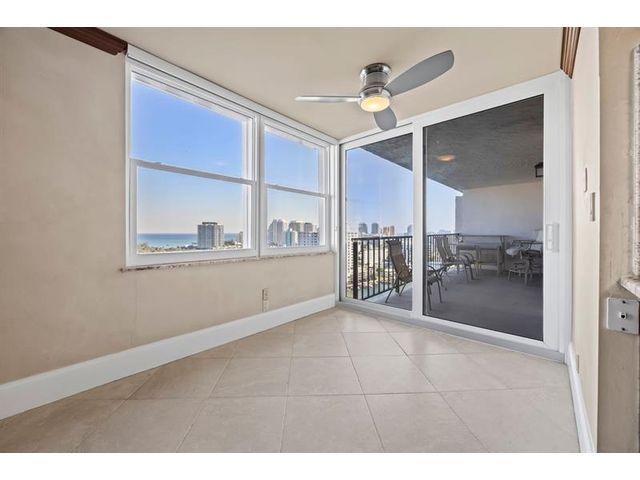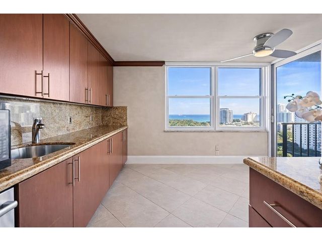 DIRECT OCEAN AND INTRACOASTAL VIEWS from this high-floor 2BR/2BA residence in an unbeatable Fort Lauderdale location. Just steps to the sand, dining, and shopping. Unit 19F features tile flooring throughout the main living area, granite kitchen countertops, abundant cabinetry, all impact windows and one impact-rated sliding glass door for added security and storm protection. Semi-private elevator entry and spacious balcony with sweeping unobstructed water views. City skyline views from both bedrooms, generous closets, plus extra storage, one assigned parking space and plenty of guest parking. HOA includes everything except electricity and internet. Resort-style amenities: pool, gym, saunas, clubhouse, lounge, library. 50-year building cert is completed, no assessments, strong reserves.