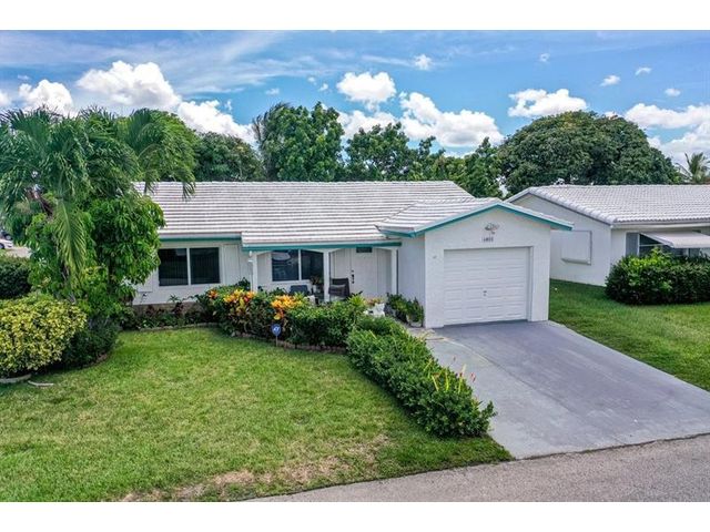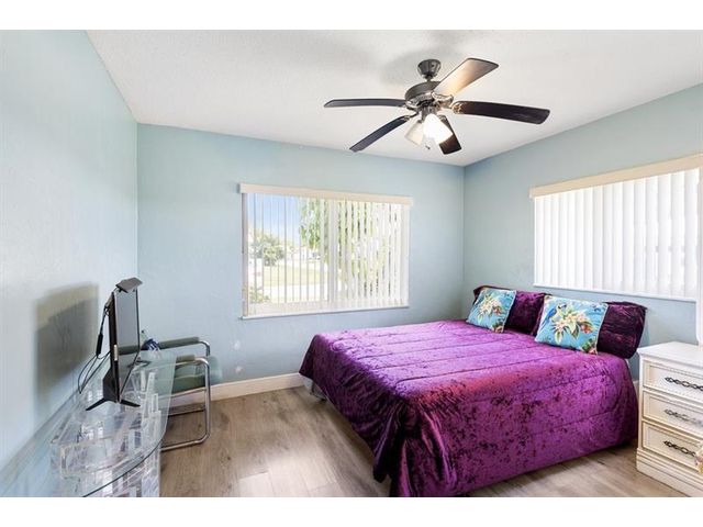 MOTIVATED SELLER! Fall in love the moment you pull up to this charming 2-bedroom, 2-bath corner lot gem in a vibrant 55+ community! This isn’t just a house—it’s your next happy place! Step into a remodeled designer kitchen with stainless steel appliances. The spacious family room can easily be used as a third bedroom, office, or media room—your choice! Enjoy bright bedrooms, upgraded bathrooms, and a laundry room with a washer and dryer. The new floors and loads of natural light make this home shine. New AC. Impact windows and impact garage door. The exterior is equally impressive-beautifully manicured landscaping, an inviting front porch, and fruit trees that add a tropical touch. This home offers the lifestyle you deserve. Low HOA. Don’t wait—schedule your showing today before it's gone!