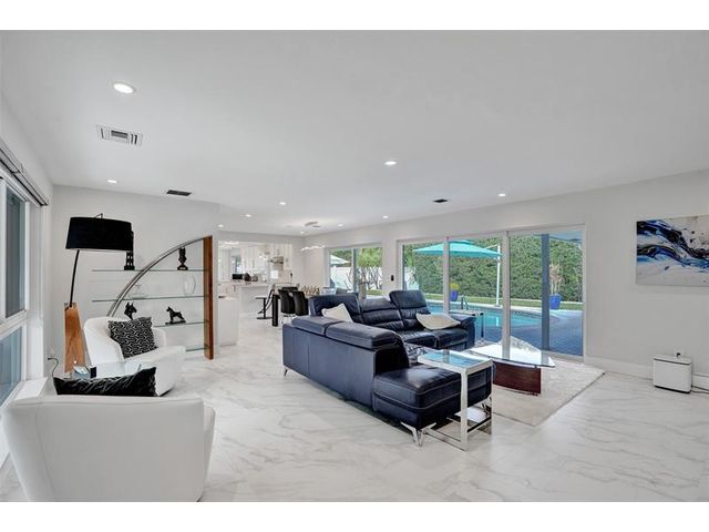 Fully remodeled pool home in Coral Ridge Country Club at a great price. Beautiful open space with tons of light. Awesome back yard with large heated pool, fully fenced and large privacy hedge. Large outdoor porch. Contemporary remodel with Porcelain tile throughout and beautiful kitchen and baths. True 3 bedroom, 3 bath with 2 ensuites. Large Master suite overlooks pool, spacious bath and walk in closet plus dedicated AC just for the bedroom. All bedrooms are nice size. All Hurricane Impact windows and doors. Huge 2 car garage with AC. Chefs kitchen with Quartz counters and new appliances. Recent updates include main AC (25'), whole house water filtration (25'), pool pump and salt water system (24') and hot water heater (25') + new interior solid wood doors.