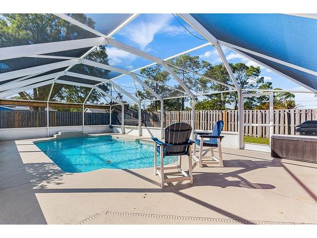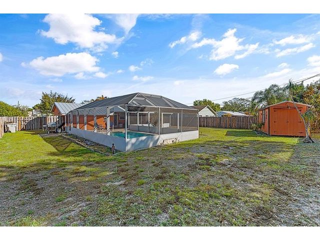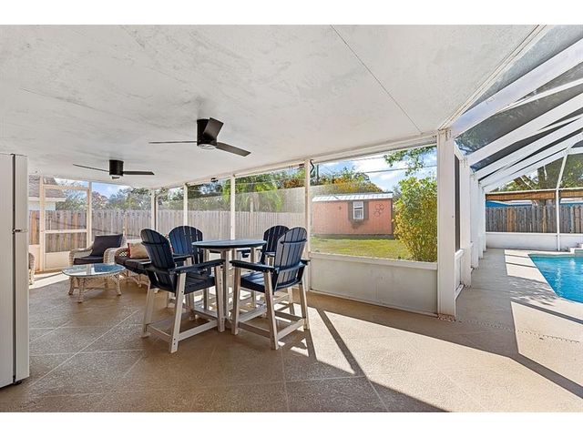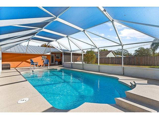POOL HOME w/ newer METAL ROOF! Beautifully maintained 3BR/2BA single-family home offering approx. 1,100 sq ft. Roof, HVAC, & water heater all 4 years old, plus new piping & plumbing throughout. Bright interior with new lighting & kitchen with SS appliances & island. Enjoy your private outdoor oasis with a screened-in pool, spacious patio perfect for entertaining, fully fenced oversized yard with irrigation, & backyard shed for extra storage. Conveniently located near town, parks, schools, & the water. Located in a quiet neighborhood & perfect for year-round or seasonal living. Move-in ready!