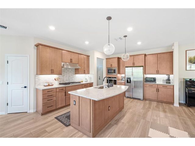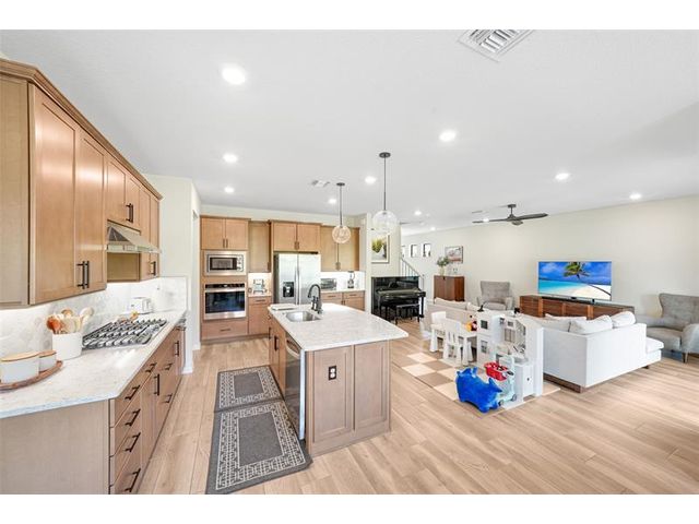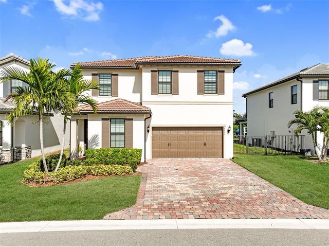 Built in 2023 and beautifully maintained, this stunning 5BD/3BA home in Fields at Gulfstream Polo offers 2,727 SqFt of bright, open living space designed for effortless living and entertaining. The spacious kitchen features Whirlpool gas appliances and a large center island that flows seamlessly into the living and dining areas. Impact windows and doors plus a hurricane-rated, braced garage door provide added peace of mind. Enjoy a covered patio and private fenced backyard ideal for gatherings or quiet evenings. Brick-paver driveway and 2-car garage. A must-see home that truly checks every box—schedule your tour today! Equal Housing Opportunity.