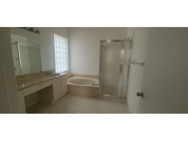 One or more photo(s) have been virtually staged. Spacious multi-level home featuring 4 bedrooms and 3 bathrooms with a 2-car garage! Welcoming double door front entry opens to a functional layout with one bedroom and full bath on the main floor—perfect for guests or a home office. Upstairs you’ll find the primary suite and additional bedrooms, including a primary bath with double vanity and a separate tub and shower. Enjoy outdoor living in the fenced backyard, ideal for relaxing or entertaining!