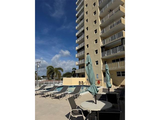 spacious one bedroom 1.5 bath penthouse condo unit. open view of the ocean and city. steps from the ocean. secure entrance to the bldg. assigned parking. heated pool. BBQ, laundry facility on each floor. shows well. NO rental 1st two years. min 90 days.. no pets. min 700 credit score required. shops behind the bldg. or take a short drive to Atlantic and A1A or Commercial and A1A offering you, lots of restaurants and entertainment, plus pier.. concrete restoration has been completed.