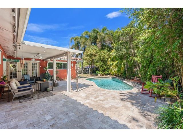 Discover a private tropical retreat in Wilton Manors on nearly 1/4 acre. This heated pool home blends South Florida charm with thoughtful updates, including impact windows and renovated bathrooms. The kitchen features gas cooking, custom wood cabinetry, updated countertops, and a vibrant tile backsplash. Terracotta floors, a brick fireplace, and French doors create warm indoor outdoor flow filled with natural light. A separate room with full bath and wet bar offers flexible space for guests, in laws, or AirBnB potential. Outside, enjoy a travertine patio, freeform pool, covered lounge area, paver driveway, and lush, mature landscaping that creates exceptional privacy. Minutes to Wilton Drive, dining, nightlife, and beaches. Schedule your private showing today.