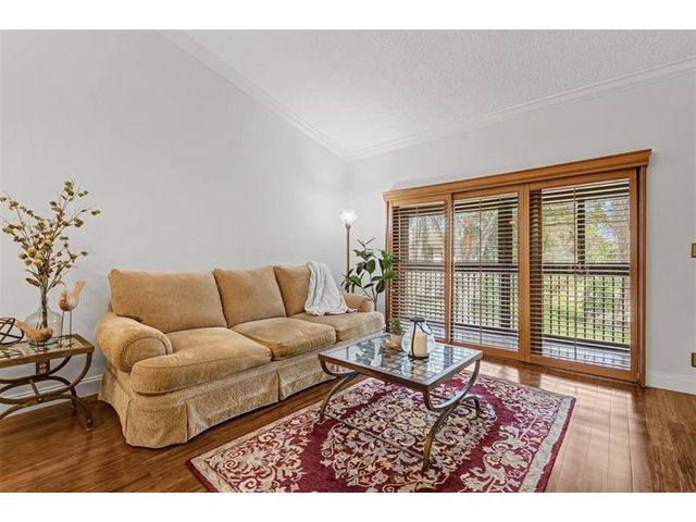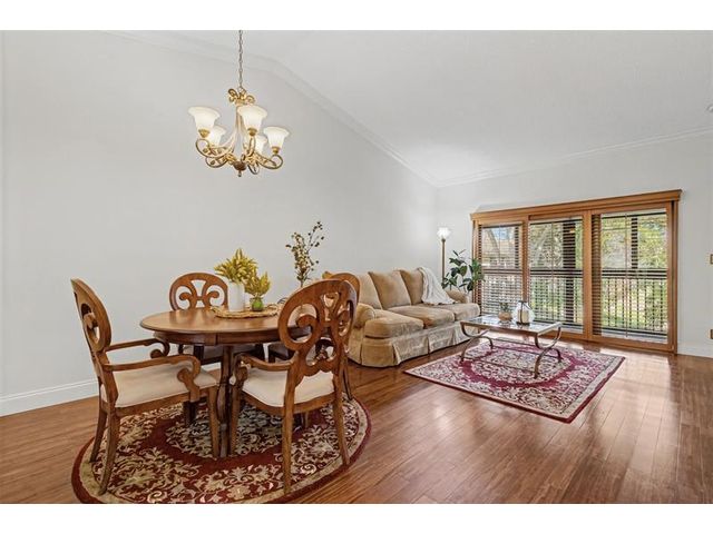 If you are looking for cozy, tucked away private and quiet- this can be your new HOME. A serene lake view off your balcony to enjoy your morning coffee or evening beverage! Crown molding and neutral painted walls with vaulted ceilings in the family room. Kitchen boasts granite and wood cabinets and a pantry with roll out drawers. Large walk in closet in the primary suite. Unit has a stacked washer/dryer. Front door parking in the first spot! No long walks to your front door! IMPACT WINDOWS. This unit has one of the lowest condo fees in the Township! Close to the Promenade with restaurants and shopping, nearby parks, natural trails in the city. You will have access to all the amenities the Township provides! l