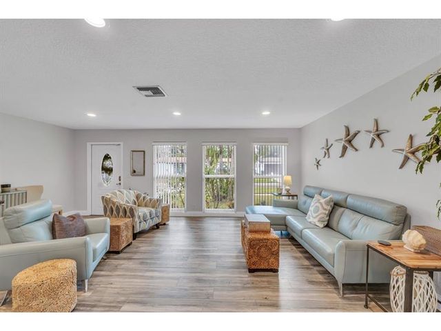 Tastefully updated 2Bed/2Bath Single Family home located on a quiet interior lot in the active, Pet Friendly 55+ community of Coco Wood Lakes. Versatile flex space currently used as a den and breakfast nook, along with a desirable split floor plan. Enjoy the large, private screened patio, ideal for relaxing or entertaining. The single-car garage features hurricane-rated door, updated electrical panel & W/D. 2009 roof (in great shape), 2019 A/C, and 2019 HWH. Full hurricane protection with impact windows and/or accordion shutters. Furniture is negotiable, making this home truly move-in ready. Low HOA of $198/month includes all amenities, cable, and high-speed fiber internet. Ideally located near EVERYTHING. Florida living at its best—convenient, comfortable, and well-maintained.