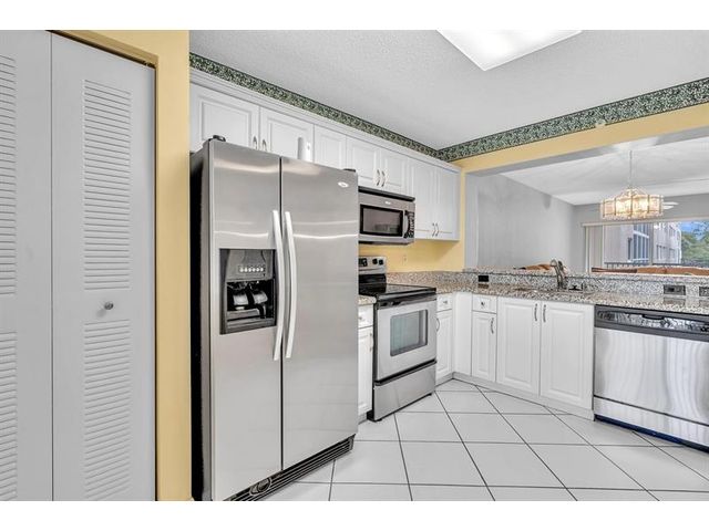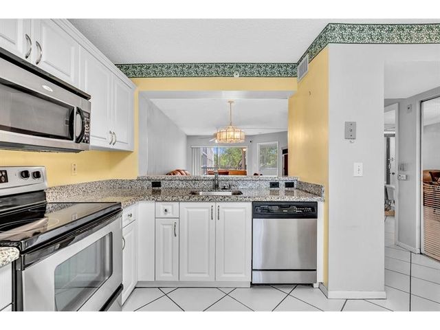 Lovely home, hardly occupied. Gourgase* 2-bed, 1.5-bath condo with stunning WATER VIEW is in the desirable Weldon community. This unique home features a gorgeous, open-plan kitchen with New White Cabinets & Granite Countertop overlooking the living/dining area & screened balcony. Top-of-the-line stainless steel appliances. Beautiful tile flooring in the living area—stunning wood flooring in the bedrooms. The master suite offers walk-in closets. An ample layout & an excellent split floorplan. New Closet Doors in the 2nd bedroom & hallway closet. Light & bright. Large sliding doors stack away to enhance your private & relaxing balcony—parking is next to the unit. *This building is FHA-approved. Enjoy the amenities of Kings Point, including a state-of-the-art performing arts center & theater.