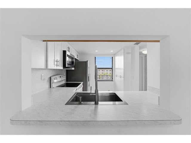 Fully renovated 2-bedroom, 2-bath condo in the highly sought-after Sunrise Lakes section 4! Well-maintained unit features a spacious screened balcony with serene views of the golf course and pond. New Air conditioner and drain pan in the unit with compressor on the roof, Newer Water heater with drain pan, Porcelain tile floor with wood plank aesthetic throughout all rooms, Updated Bathroom vanities and lights, New kitchen cabinets, counters, pulls, sink, faucet, microwave, refrigerator, and storage pantry, Smoke detectors throughout, GFCI outlets in kitchen, bathrooms, and exterior patio, New Paint throughout. Impact resistance windows and doors. The building has a brand-new roof and the elevator was recently rebuilt. This condo is part of a vibrant 55+ active adult community.