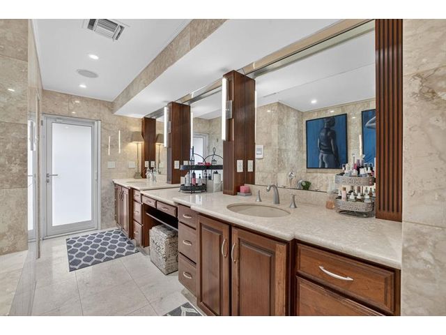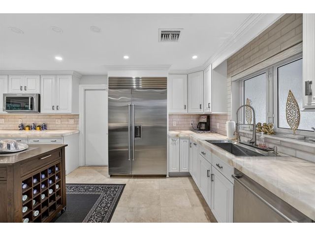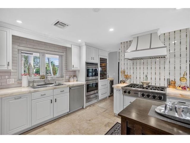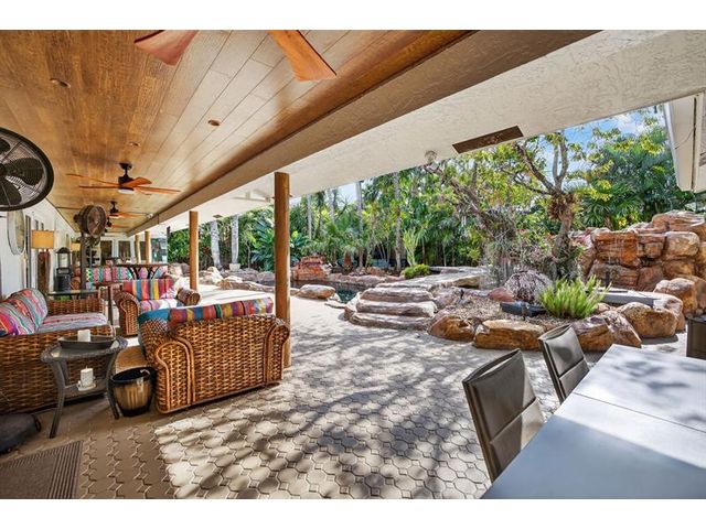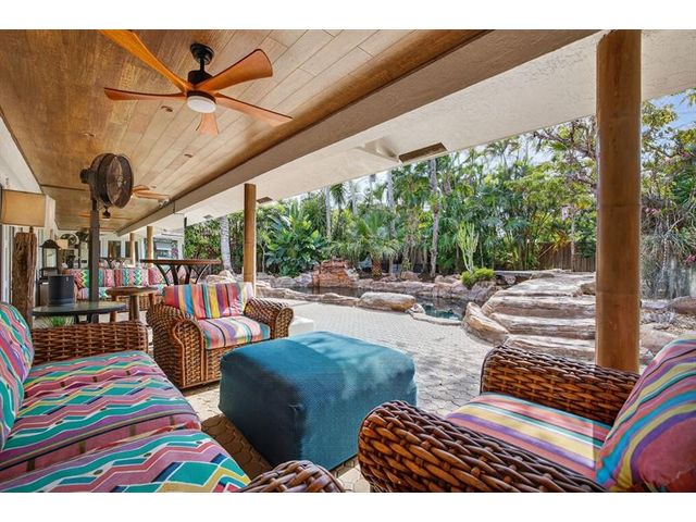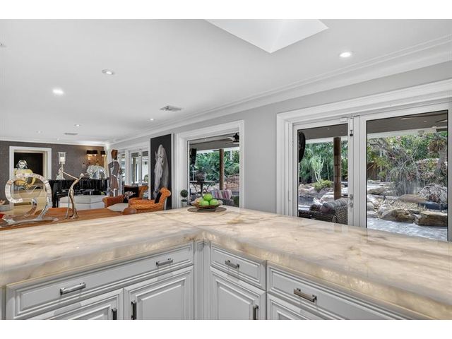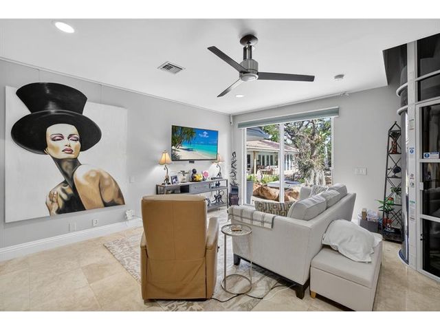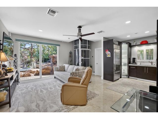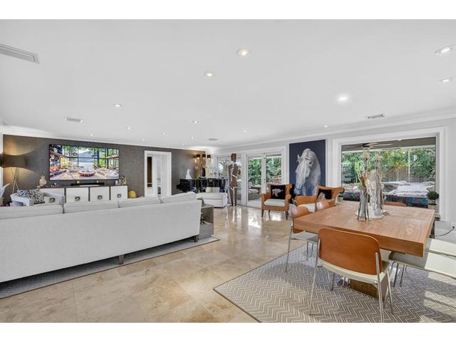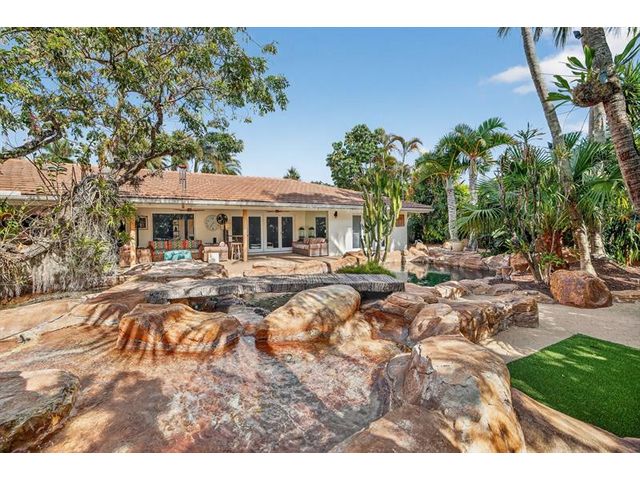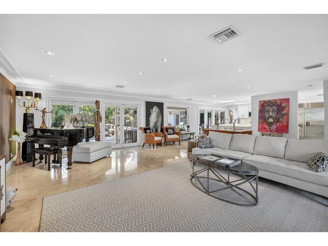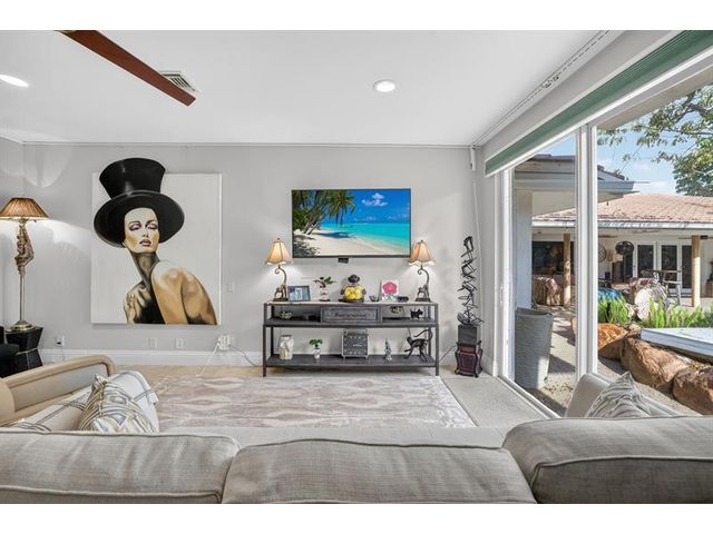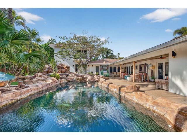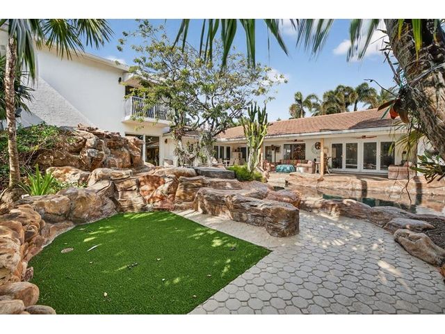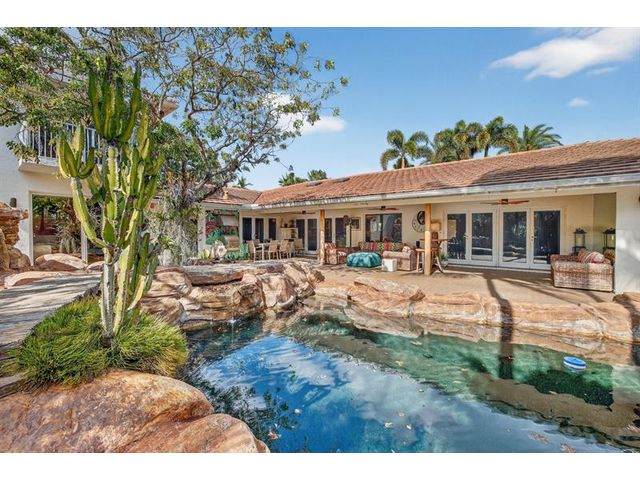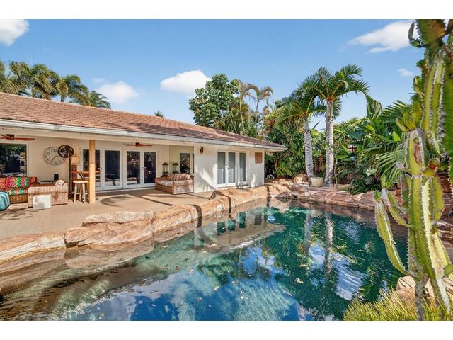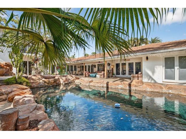 Meticulous one-of-a-kind resort-style estate on an oversized lot in Coral Ridge Country Club. Beautifully renovated 3BR/2.5BA main home plus attached two-story 1BR/1.5BA guest house with private entry, kitchen & elevator, ideal for extended family, guests, or a private office retreat. Open floor plan with split bedrooms and a chef’s kitchen featuring quartzite counters and Wolf, Sub-Zero, and Viking appliances. Impact windows and doors, custom closets, electric shades, security system, and full-house generator. Tropical backyard oasis with heated saltwater lagoon pool, waterfalls, spa, built-in grill, covered patio, mosquito misting system, and lush landscaping and lighting. This exceptional property offers true resort-style living in one of Fort Lauderdale’s most desirable neighborhoods.