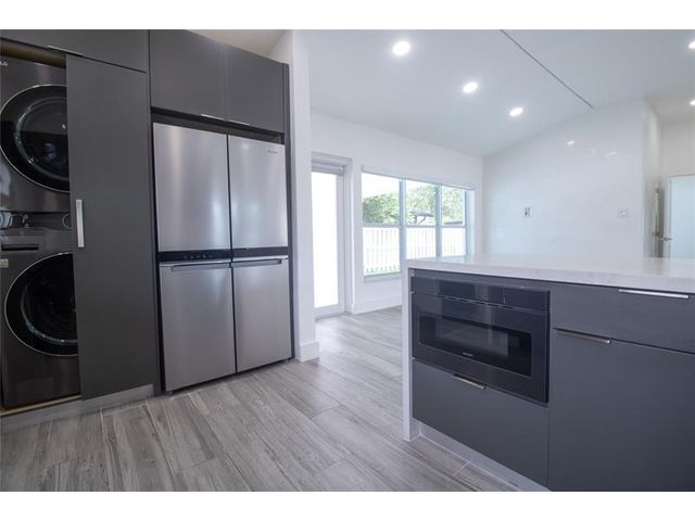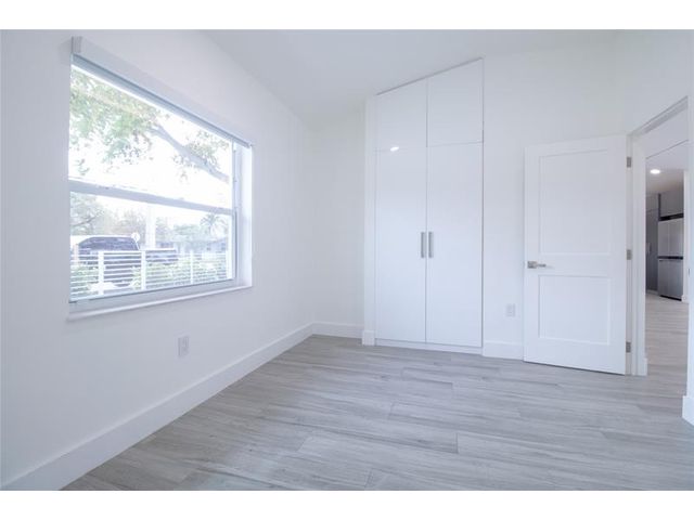 Remodeled Croissant Park Corner lot home featuring 2 bedrooms, 2 bathrooms & southern exposure with modern finishes plus a separate large shed. Custom modern kitchen with quartz countertops & new appliances. Wood plank style tile floors throughout. Master bedroom offers built in closets with a remodeled bathroom. High ceilings, impact windows, & tons of natural light. Completely fenced spacious front and backyard, situated on a 7,024 sq/ft lot. Separate shed structure offers ample space for storage. Plenty of parking inside & outside the gate. Stackable washer / dryer. Electric instant hot water heater. Central AC. Great location close to parks, school, airport and much more.