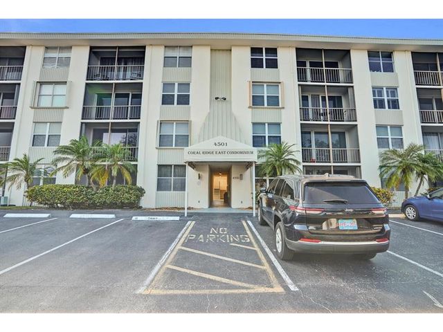 Great location in desirable Coral Ridge. Least expensive 2/2 unit East of US1-- spotless and ready for move in. Well maintained building--Maintenance includes cable/wifi! Laundry on same floor, close by. 2 Elevators. Quiet and private. Close to restaurants, shops, Lauderdale-by-the-Sea and beach. Roof from 2018, concrete restoration, exterior paint and 50 yr inspection complete. OK TO Lease 1st year. Pet friendly-- 2 pets <15# each. Accordian shutters.