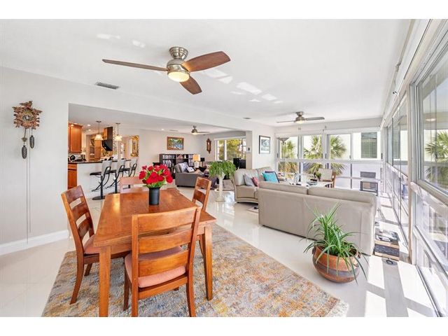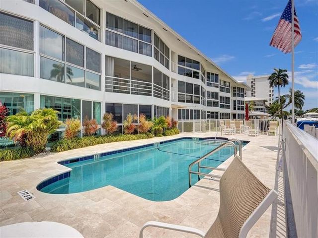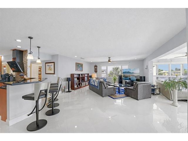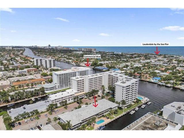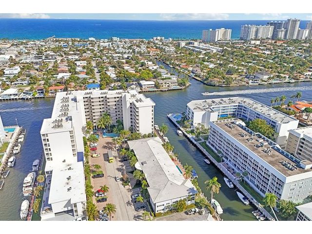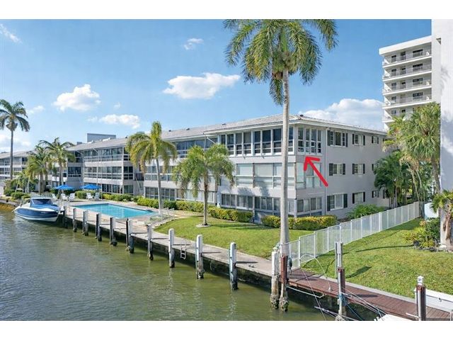 Open & spacious 2,150 sq ft condo with amazing water views!! Watch the boats down the intercoastal from your living room. Corner unit offering floor to ceiling windows + natural light beaming in. Very large kitchen with ample cooking space & cabinetry. Functional floor plan offering 3 bedrooms and 2 renovated bathrooms. Master suite has walk in closet. AC 2025. Lots of closet space. Covered carport parking spot included. Washer/dryer in the unit + Additional storage unit. Bldg is finishing updates including concrete restoration, painting, refurbished pool area & more. All assessments paid in FULL. HOA fee includes exterior insurance/wind/hurricane, water/sewer/trash + more. Elevator in building. Walk to Lauderdale-by-the-Sea, enjoy restaurants & the beach. Boat dockage available for rent.