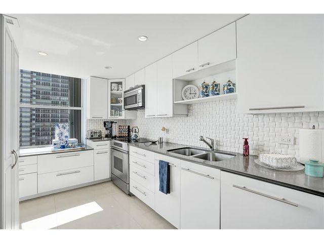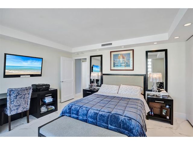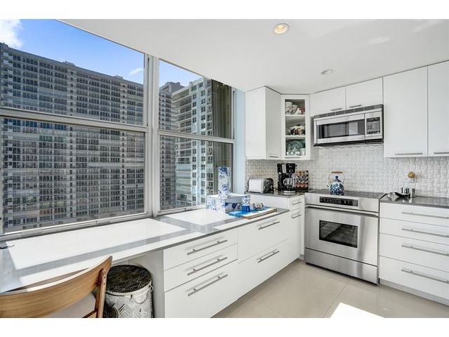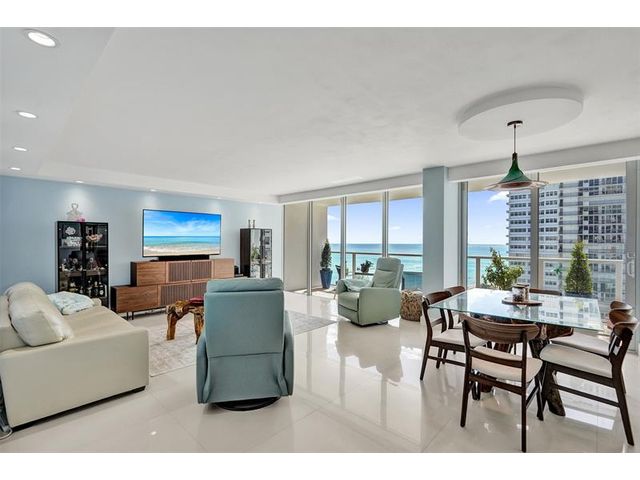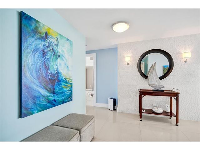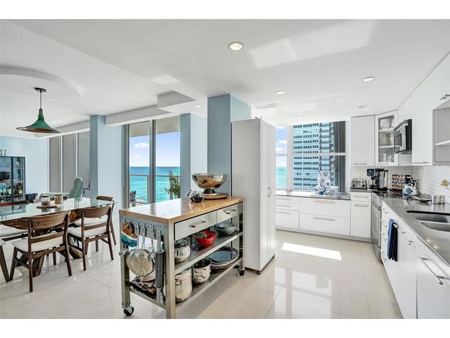 Stunning, fully renovated 2 Bedroom, 2 Bath condo with breathtaking ocean and city views from both the north and south exposures. Semi private elevator opens to a bright, open floor plan featuring an updated kitchen with stainless steel appliances, tile flooring throughout, and floor to ceiling impact windows and doors. Spacious primary suite offers a beautifully updated bath and walk in closet. Generous second bedroom also enjoys ocean and city views. In unit laundry, abundant storage, and garage parking included. Enjoy a large balcony overlooking the ocean and pool. Luxury amenities include 24 hour security, valet, resort style pool, putting green, fitness center, and private beach access. Just minutes to dining and shopping.