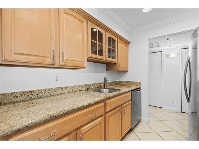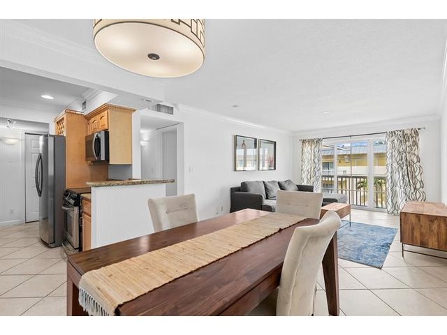 Prime Victoria Park location - walk to Las Olas shops & restaurants - minutes to downtown & the beach!! Light & bright 3rd floor 2 bedroom/2 bath updated unit features tile & wood floors throughout, kitchen with granite kitchen counters & stainless steel appliances, tons of closet space & storage including walk in closet in primary bedroom, built-ins in dining & bedroom, neutral paint, impact windows & balcony. One assigned parking space. Pine Crest Village amenities include 2 pools, 2 gyms, bbq area, business center & on site management. High speed internet included in HOA dues. HOA requires minimum 700 credit score & 2 pets are allowed with maximum weight of 40lbs each. No lease first 12 months of ownership.