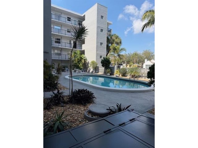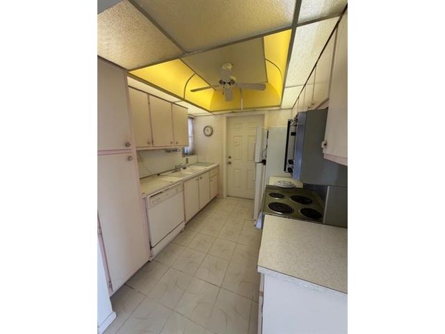 Corner unit in need of a complete refurbishing in a meticulously maintained complex. Endless possibilities. Lots of space. Master has an in bedroom full bathroom and access to a balcony/patio. Walk-in closets. Dining area off kitchen. Spacious, light filled living room. Impact doors. On site laundry. Apartment is priced to attract a Buyer who will purchase & update. Association says minimum 55 years of age. NO renting permitted. Secure fencing surrounds the building.