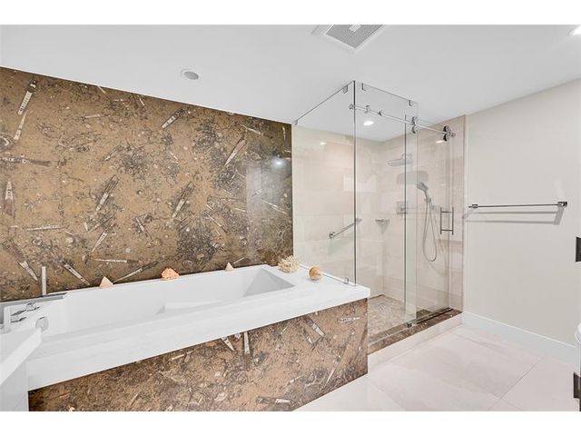 Completely renovated 2-story penthouse in the prestigious Criterion, a 24/7 security, boutique building located directly on the sand with amazing water views. A “gold-standard” concrete-restoration initiated June 2020 completed June 2022. Formal dining room and spacious living room area with balcony, chef’s kitchen with custom European cabinetry, marble counters and backsplash, Wolf and Sub-Zero appliances. Upstairs, primary suite features another balcony. Spa-like, marble primary bathroom, with dual sinks, jacuzzi tub and separate shower. 24” x 24” marble floors and floor-to-ceiling impact glass, custom, built-in closets throughout the unit. Elevator access on both living and bedroom levels. Includes a pool-side Cabana #1 with a full-bath.