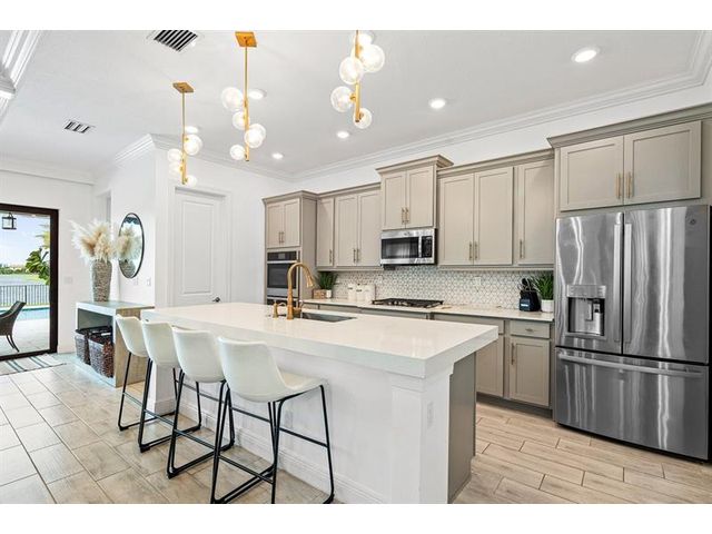 Luxurious resort-style living with this beautiful pool home on a lake. Located within the upscale and guard-gated community of Parkland Bay. Stunning finishes and upgrades. Offerings: Fabulous kitchen with a large island & gas stove, great room with fireplace, primary suite featuring a spa-like bath with free-standing tub and large shower, loft, glorious panoramic water views throughout. Gorgeous outdoor living areas featuring a heated pool, summer kitchen, and covered porch. A-rated schools, shopping, parks & dining. This home is a must-see. Impact windows and doors. World Class Amenities!