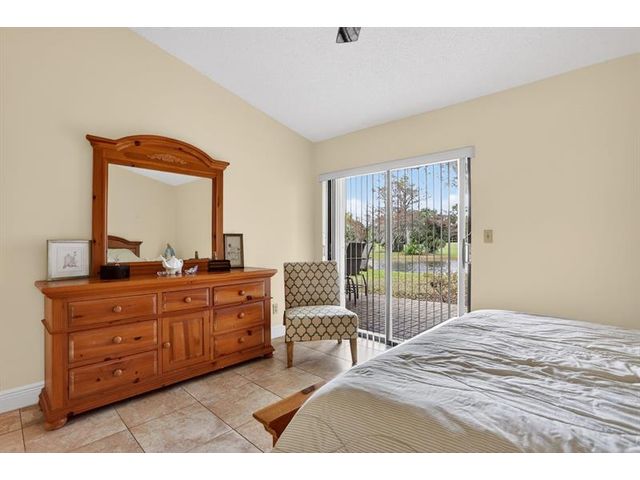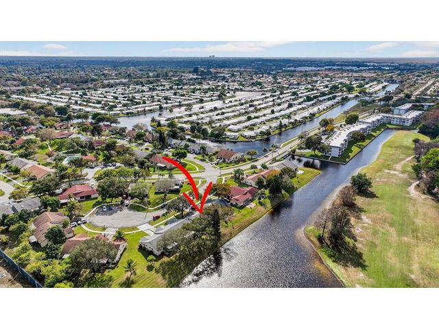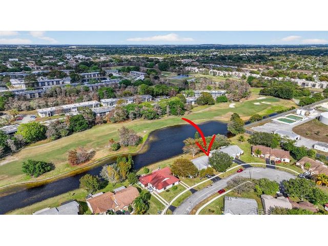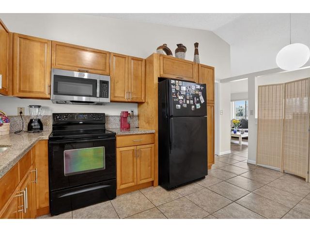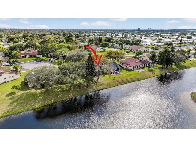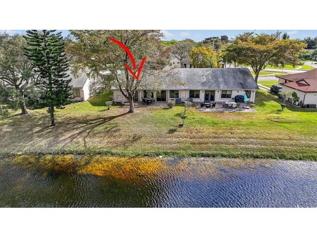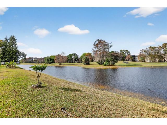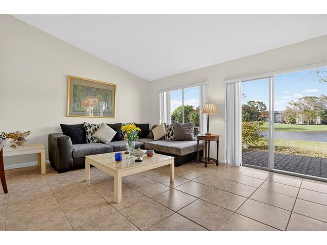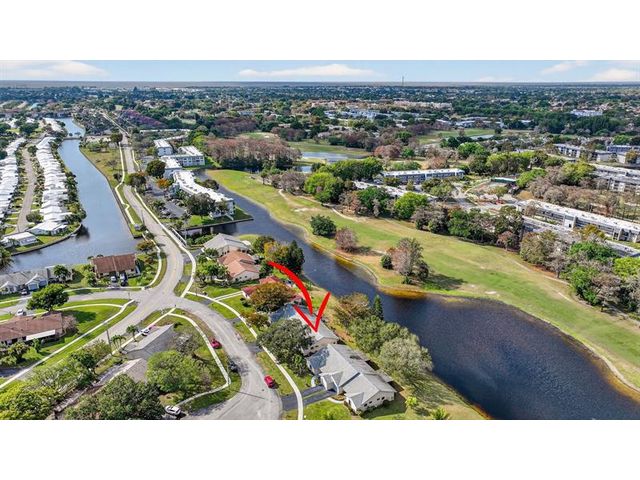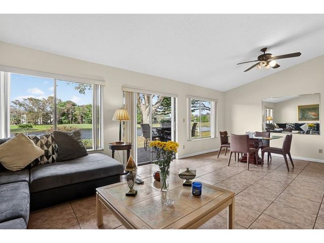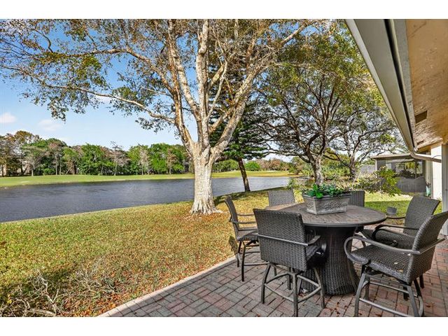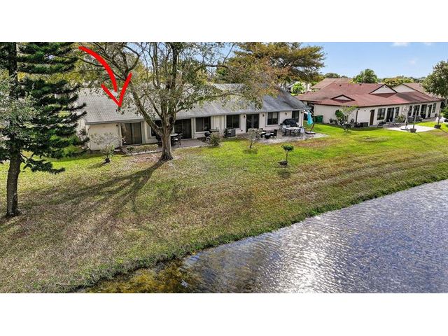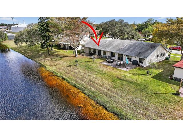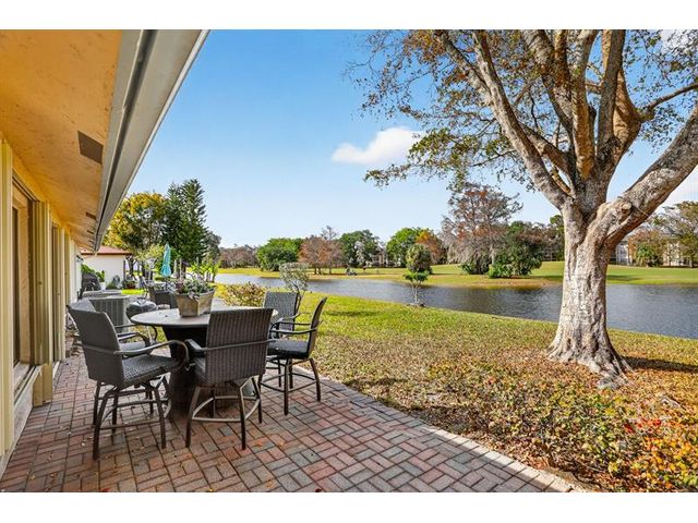 Stunning waterfront beauty on a quiet cul-de-sac street is waiting for you & your pet to enjoy nature & beautiful sunsets right outside your patio doors! Light & bright kitchen-cheerful window above sink, upgraded cabinets, granite & appliances. Living room:Spotless picture windows & million-dollar golf & water views with plenty of room for creative furniture placement! Private primary bedroom suite:stunning view, walk-in closet & remodeled, spa-inspired bath-inviting shower, nicely placed accent tile, modern vanity & mirror. Desirable split plan with separate 2nd bedroom hallway for more privacy. Guest bath:Relaxing soaking tub & beautifully upgraded. Vaulted ceilings! Sand dune paint scheme & stunning uniform tile throughout pulls it all together! One car garage-clubhouse & pool too!!