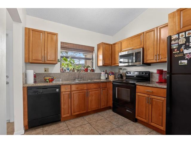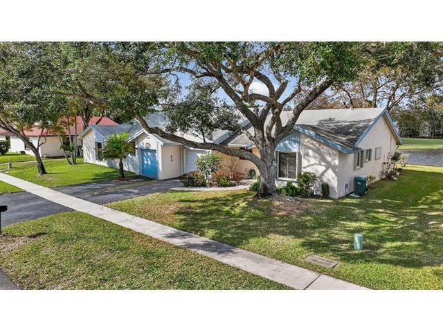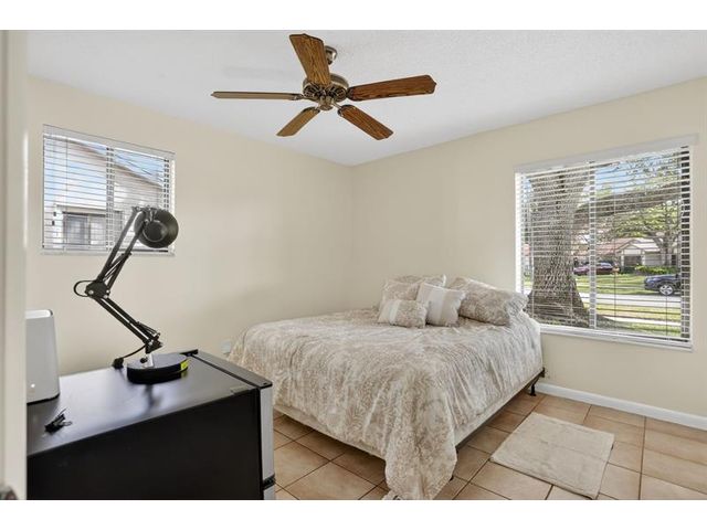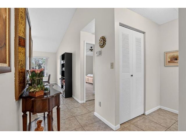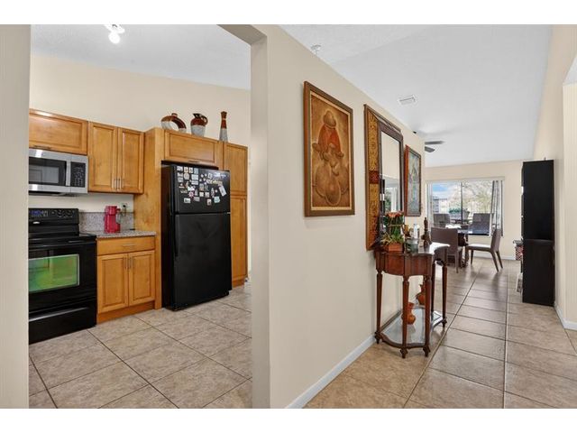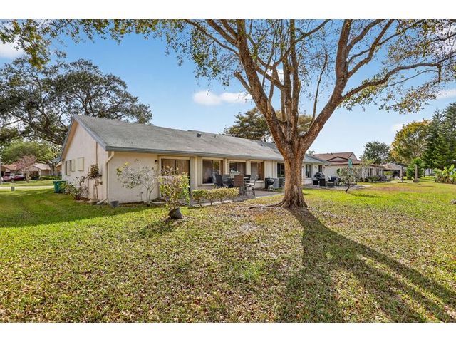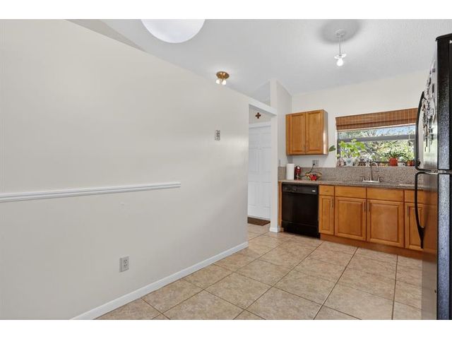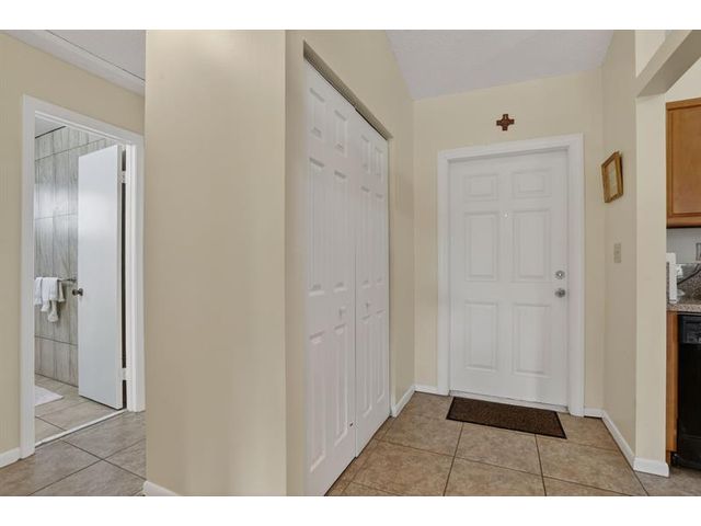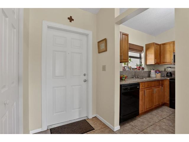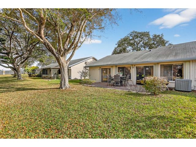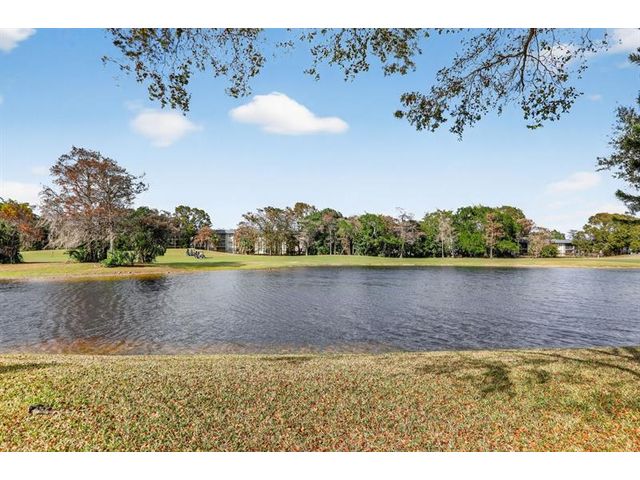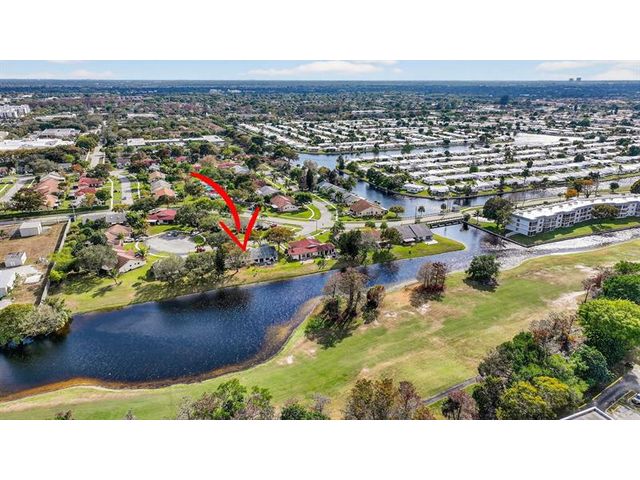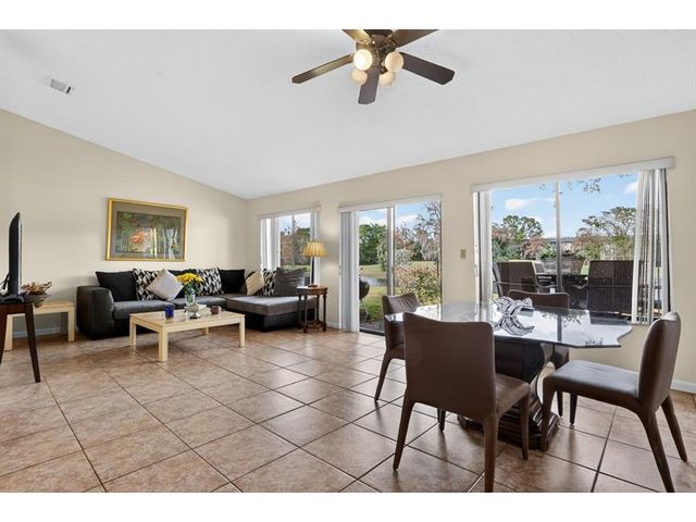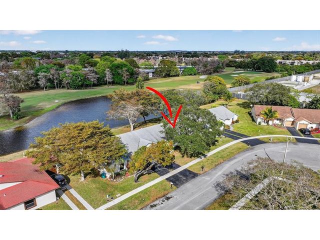 Stunning waterfront beauty on a quiet cul-de-sac street is waiting for you & your pet to enjoy nature & beautiful sunsets right outside your patio doors! Light & bright kitchen-cheerful window above sink, upgraded cabinets, granite & appliances. Living room:Spotless picture windows & million-dollar golf & water views with plenty of room for creative furniture placement! Private primary bedroom suite:stunning view, walk-in closet & remodeled, spa-inspired bath-inviting shower, nicely placed accent tile, modern vanity & mirror. Desirable split plan with separate 2nd bedroom hallway for more privacy. Guest bath:Relaxing soaking tub & beautifully upgraded. Vaulted ceilings! Sand dune paint scheme & stunning uniform tile throughout pulls it all together! One car garage-clubhouse & pool too!!