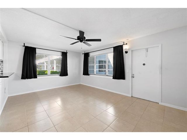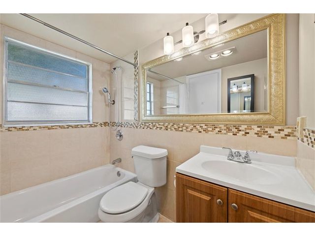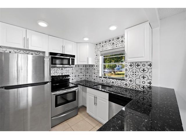 Spacious 1-bedroom, 1.5-bathroom condo conveniently located on the first floor in the gated 55+ community of Century Village. Situated near the beach, shopping, and dining, this residence offers both comfort and convenience. The condo features tile flooring throughout, a modern white kitchen with granite countertops, and stainless steel appliances. Enjoy your private screened in patio from your primary suite. The laundry room is conveniently located just steps from the unit. Community amenities include a clubhouse, swimming pool, tennis courts, courtesy bus service, and much more.