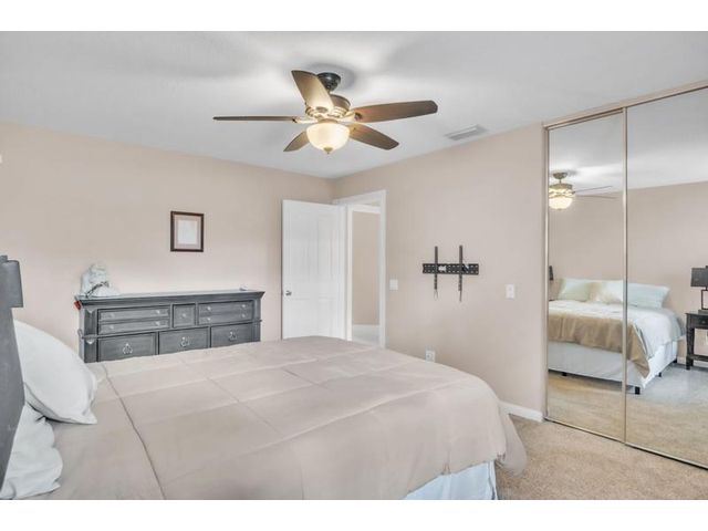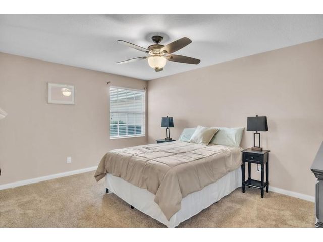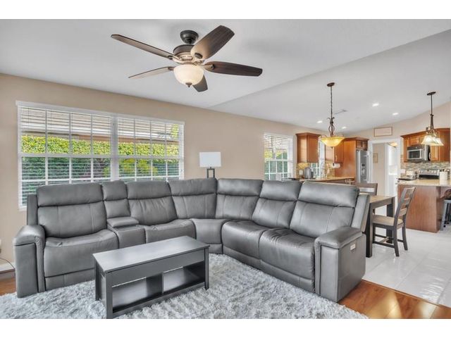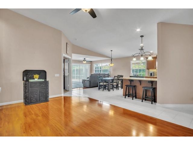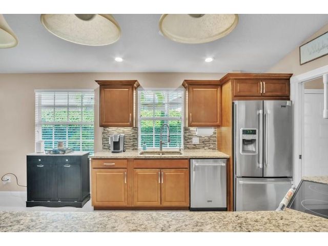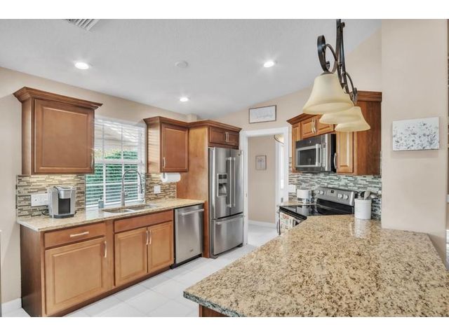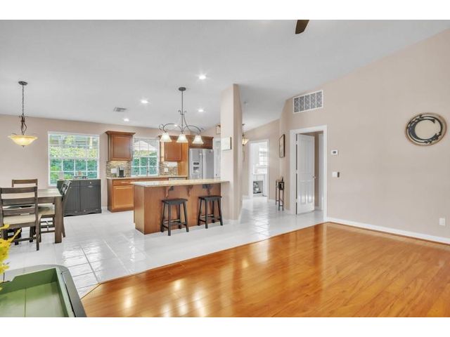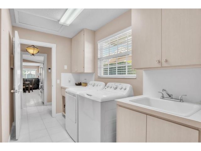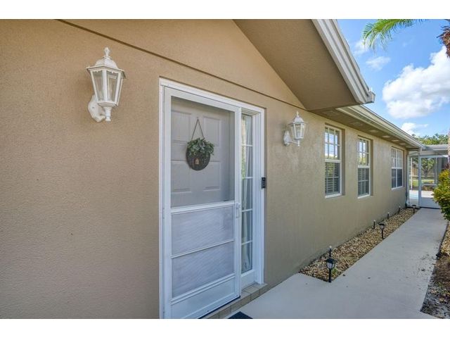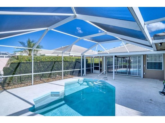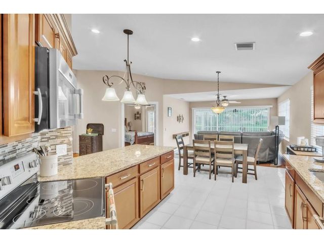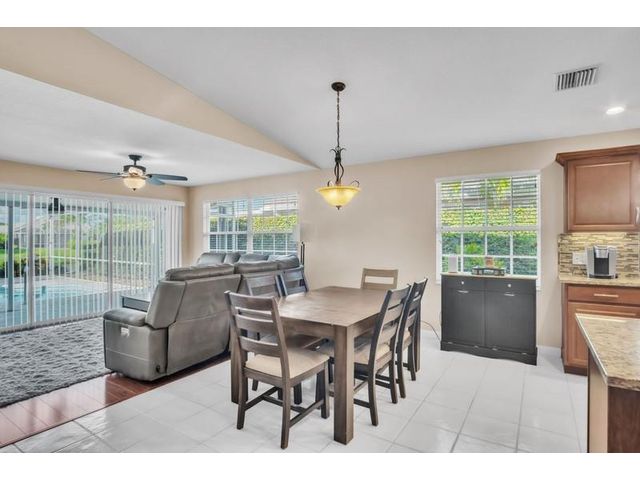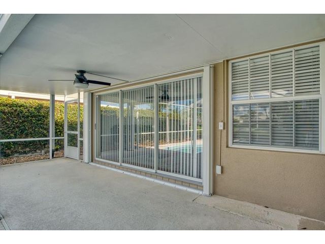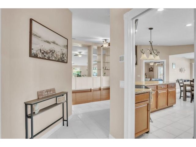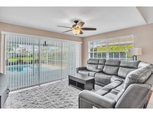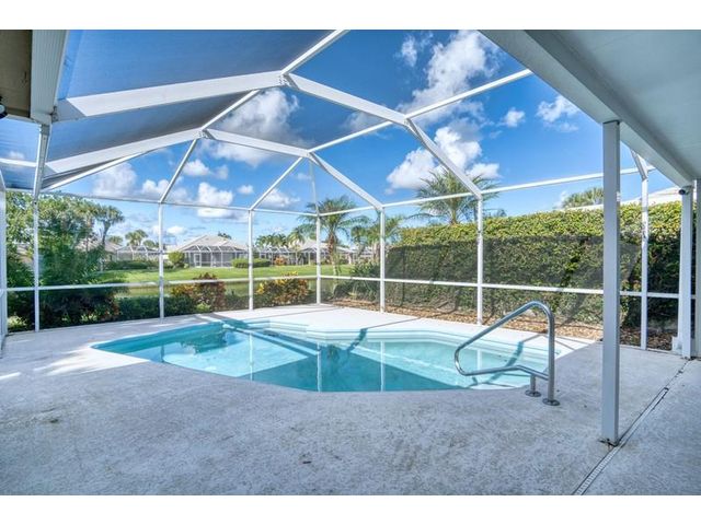 Beautiful 2/2 Divosta villa with private pool and serene water views. Updated kitchen (2016) features stainless appliances, granite counters, and an on-demand water heater. Spacious primary suite offers two closets with built-ins, dual vanities, and direct patio/pool access. Guest suite includes a large walk-in closet and can be closed off for privacy. Family room sliders (with accordion shutters) open to a covered patio and pool area. Updates include HVAC 2024, PVC/Pex plumbing 2019, and ceiling fans throughout.