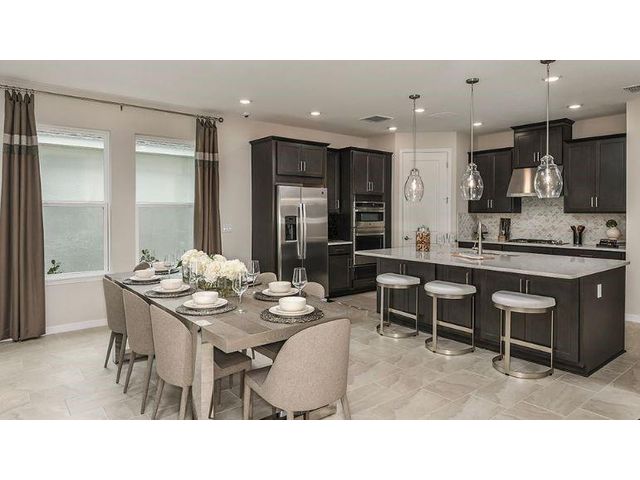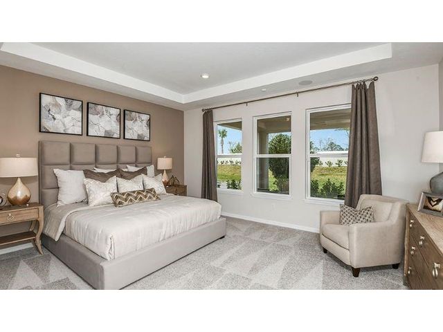 What's Special: Lake View | Close to Amenity | South Facing Patio | Flex Room. New Construction - Ready Now! Built by America's Most Trusted Home Builder. The Bermuda welcomes you with a foyer that leads to open the kitchen, dining area and great room that flow together beautifully. A first-floor primary suite sits nearby with a soaking tub, shower and walk-in closet, while upstairs three secondary bedrooms offer peaceful retreats, including one with a private bath. This gated 56-acre community features 2 lakes, amenity center with a pool, cabana, dog park, playground, and covered seating. Additional Highlights Include: outdoor kitchen rough-in, extended lanai, pocket sliding glass doors, gourmet kitchen, and deluxe primary bath. Photos are for representative purposes only. MLS F10553969