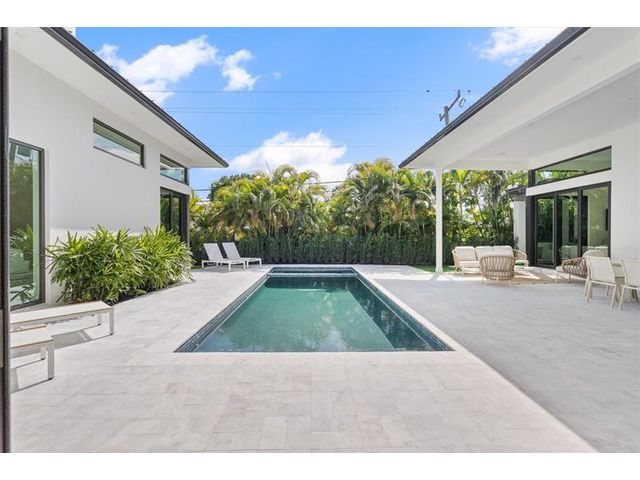 One of the only courtyard-design homes in Coral Ridge, this architectural masterpiece completed in 2026 delivers true privacy bathed in incredible natural light. The layout centers on a quiet sanctuary anchored by a signature custom hardwood-and-glass staircase. Soaring ceilings set the tone, with Taj Mahal Cremo stone flowing from the island to the backsplash in a Thermador kitchen designed as the ultimate space for cooking and entertaining. The first-floor primary suite serves as a secluded retreat with a spa bath. This 4-bedroom, 4-bathroom residence includes a versatile office/gym, thoughtful dual-level laundry, and a 3-car garage. Outside, the sun-drenched courtyard features a saltwater pool and summer kitchen where indoor and outdoor living dissolve into one.